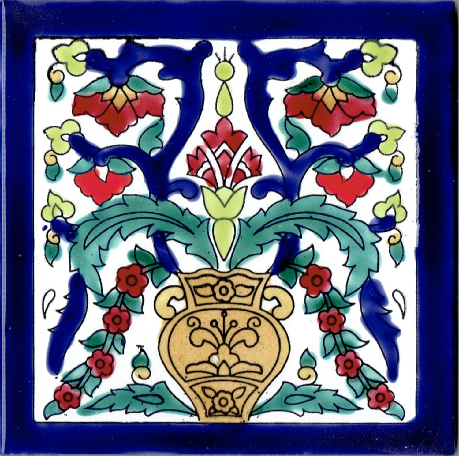 PRZEPIĘKNA ORYGINALNA ARABSKA KAFLA, RĘCZNIE MALOWANA Z ORIENTALNYMI APLIKACJAMI.