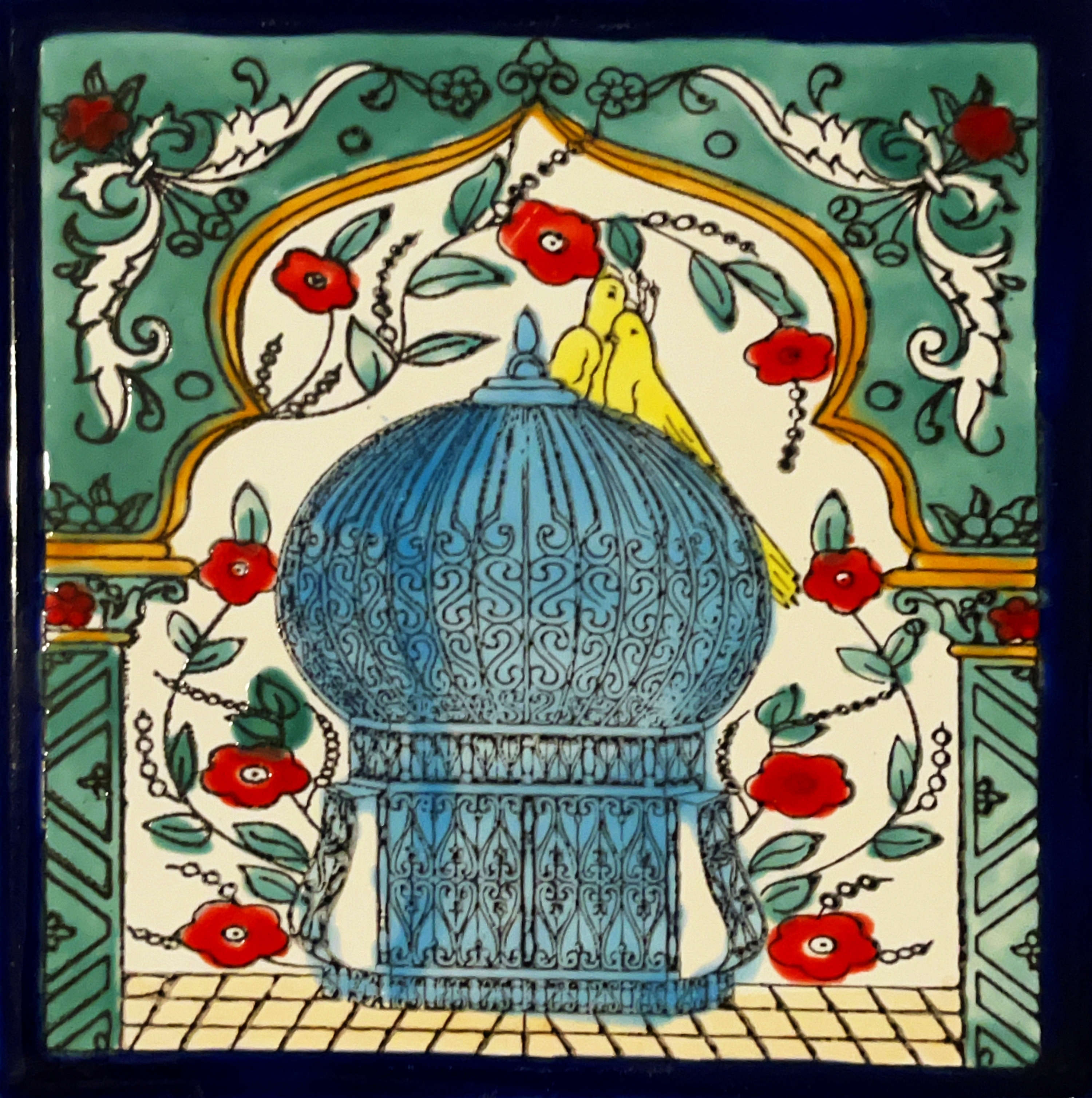 RĘCZNIE MALOWANA Z ORIENTALNYMI APLIKACJAMI - KLASYCZNA TUNEZYJSKA KLATKA DLA PTAKÓW Z REJONU SIDI-BOU.