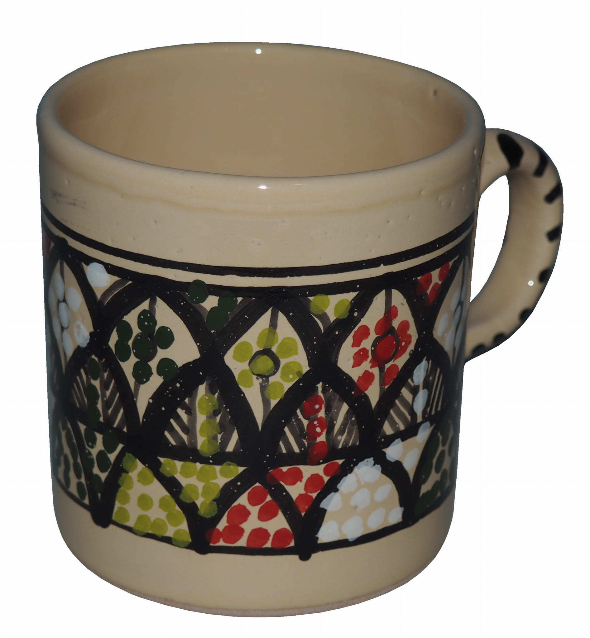 Zwraca uwagę piękne wzornictwo i bogata arabska kolorystyka. Kubek malowany jest w berberyjskie wzory.