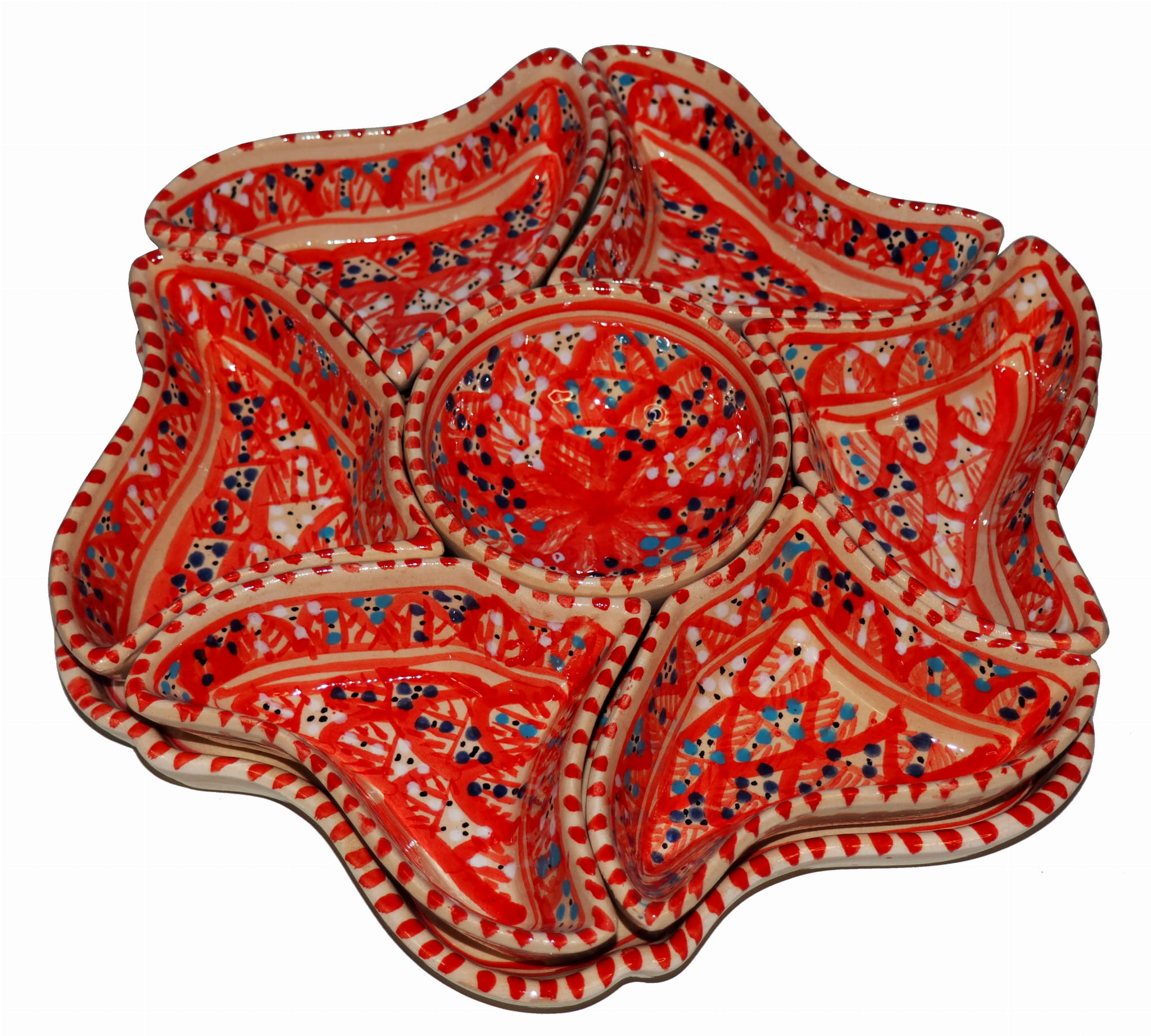 Arabski, ręcznie wykonany i ręcznie malowany zestaw na przystawki, przekąski, dodatki. Może także stanowić talerz dla wieloskładnikowego dania.