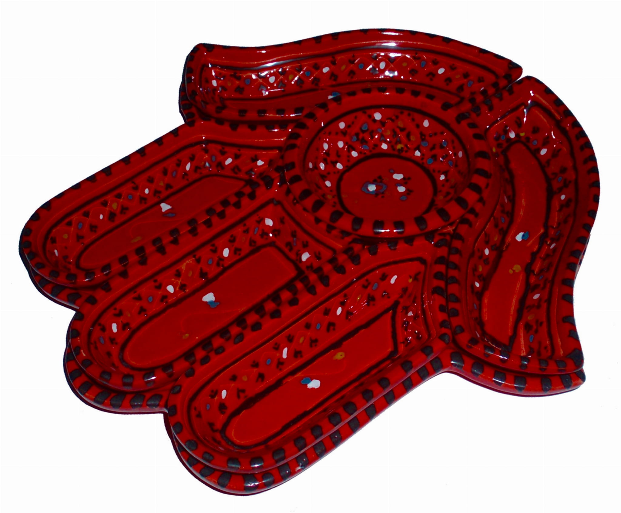 Ten ceramiczny komplet na przekąski zawiera aż 7 części: podstawkę - talerz w kształcie dłoni Fatimy o wymiarach, 5 miseczek, okrągłą miseczkę.