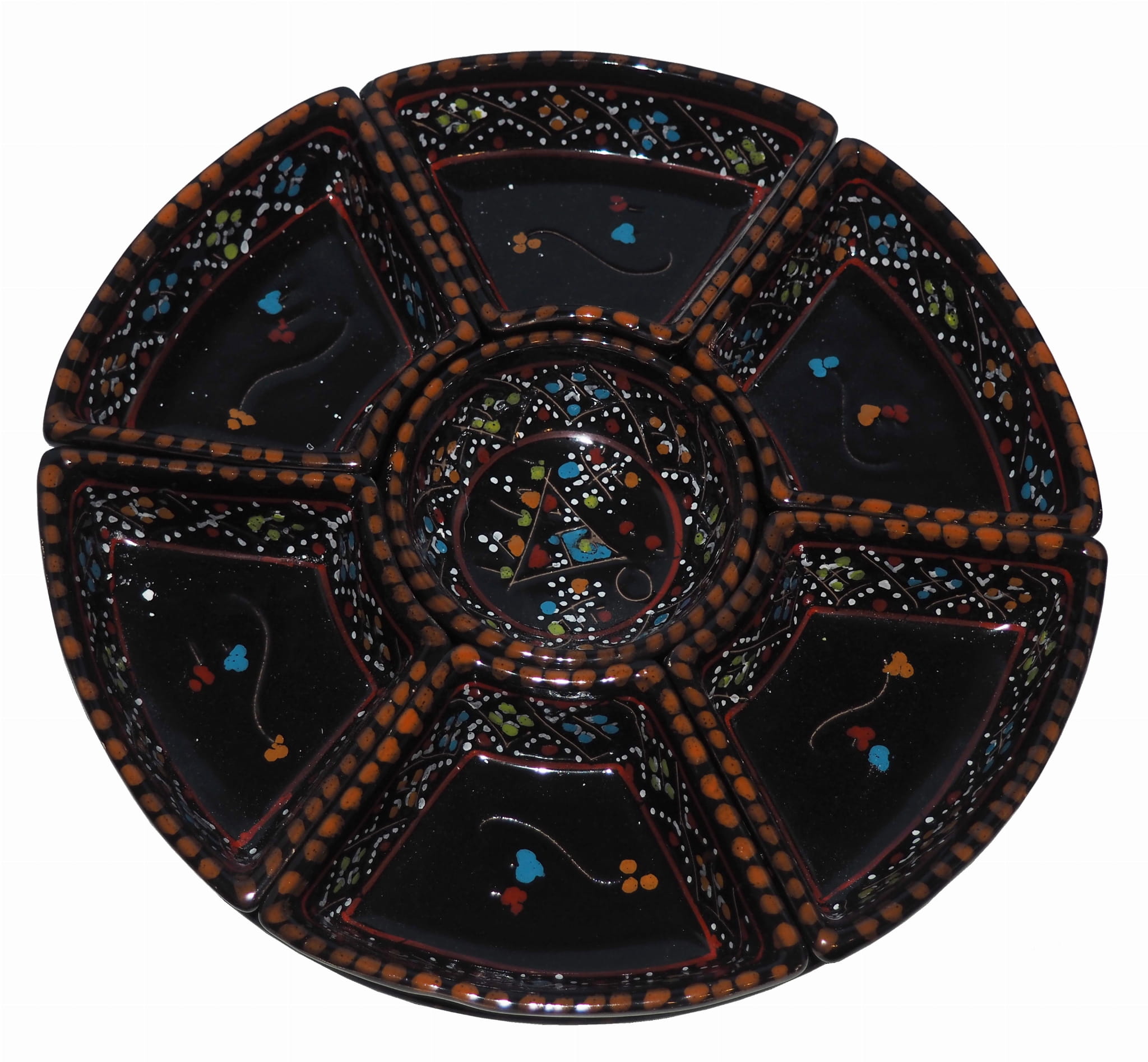 Arabski, ręcznie wykonany i ręcznie malowany zestaw na przystawki, przekąski, dodatki. Może także stanowić talerz dla wieloskładnikowego dania.