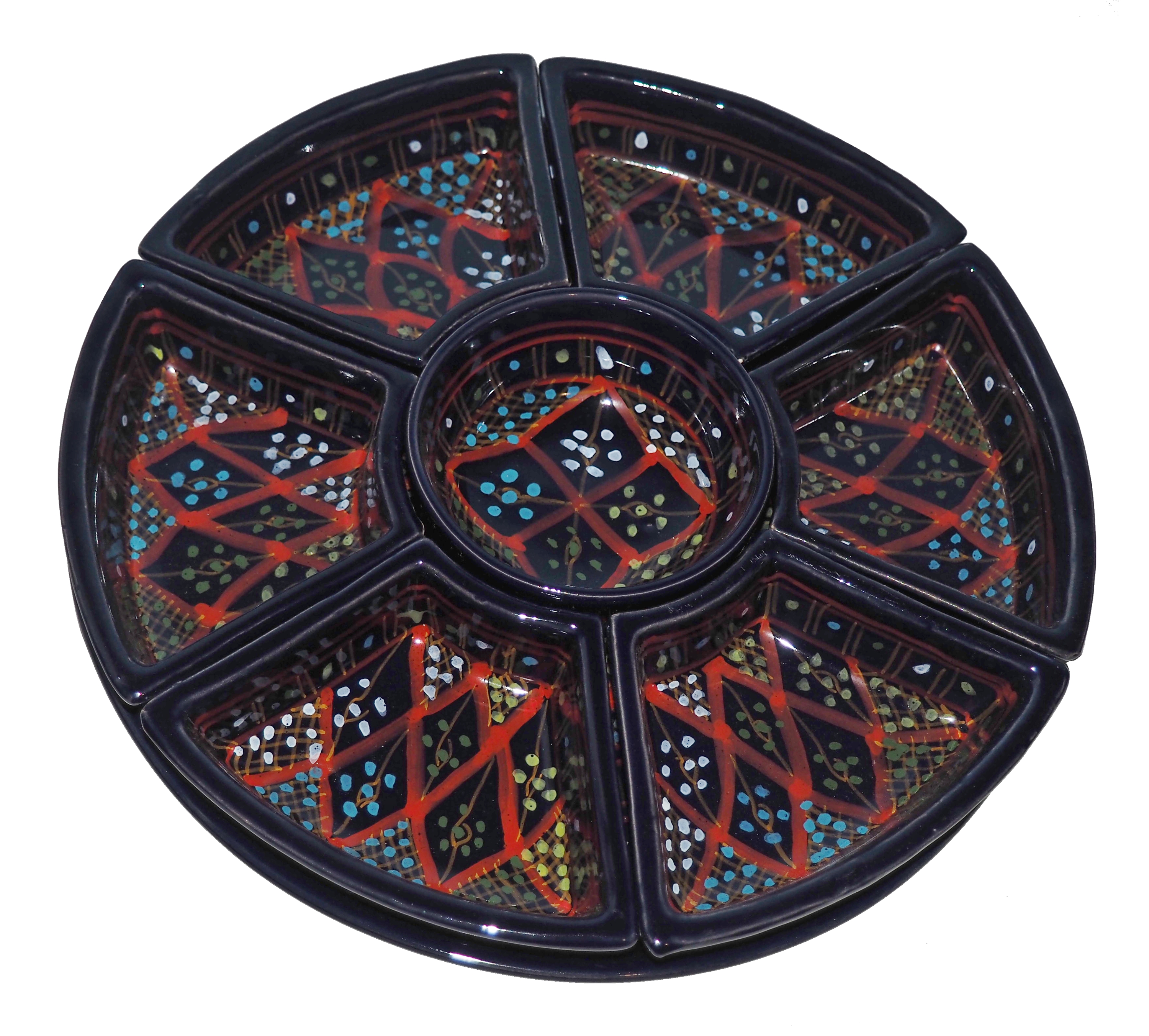 Arabski, ręcznie wykonany i ręcznie malowany zestaw na przystawki, przekąski, dodatki. Może także stanowić talerz dla wieloskładnikowego dania.