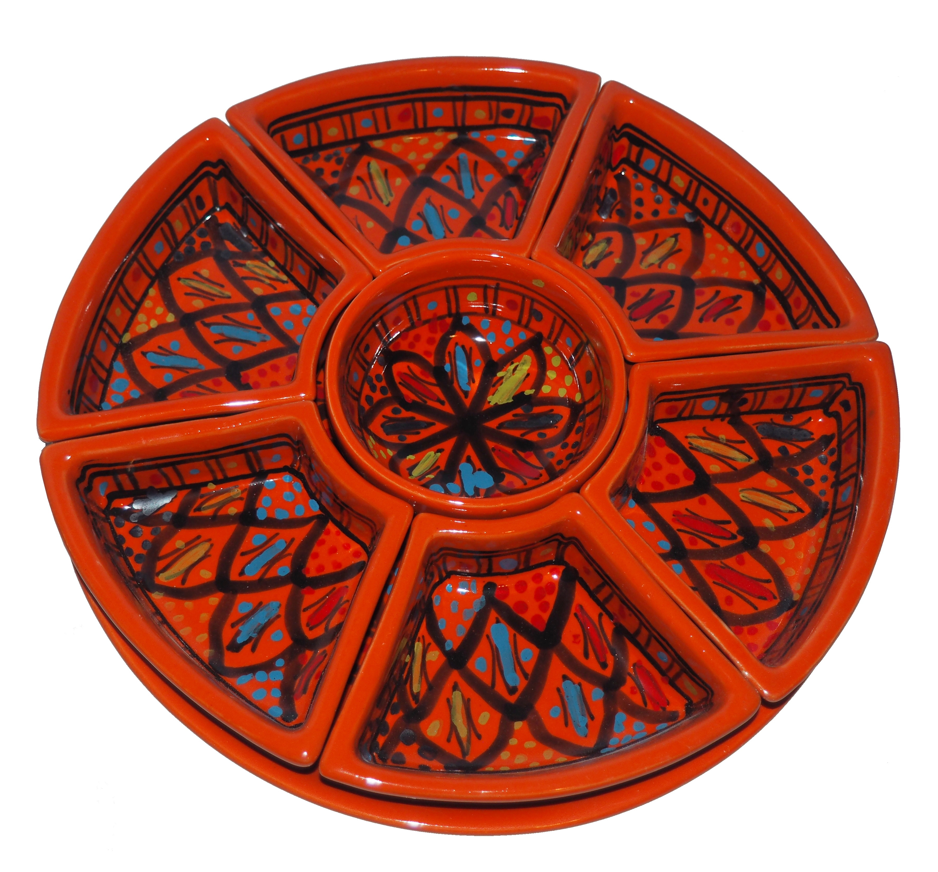 Arabski, ręcznie wykonany i ręcznie malowany zestaw na przystawki, przekąski, dodatki. Może także stanowić talerz dla wieloskładnikowego dania.