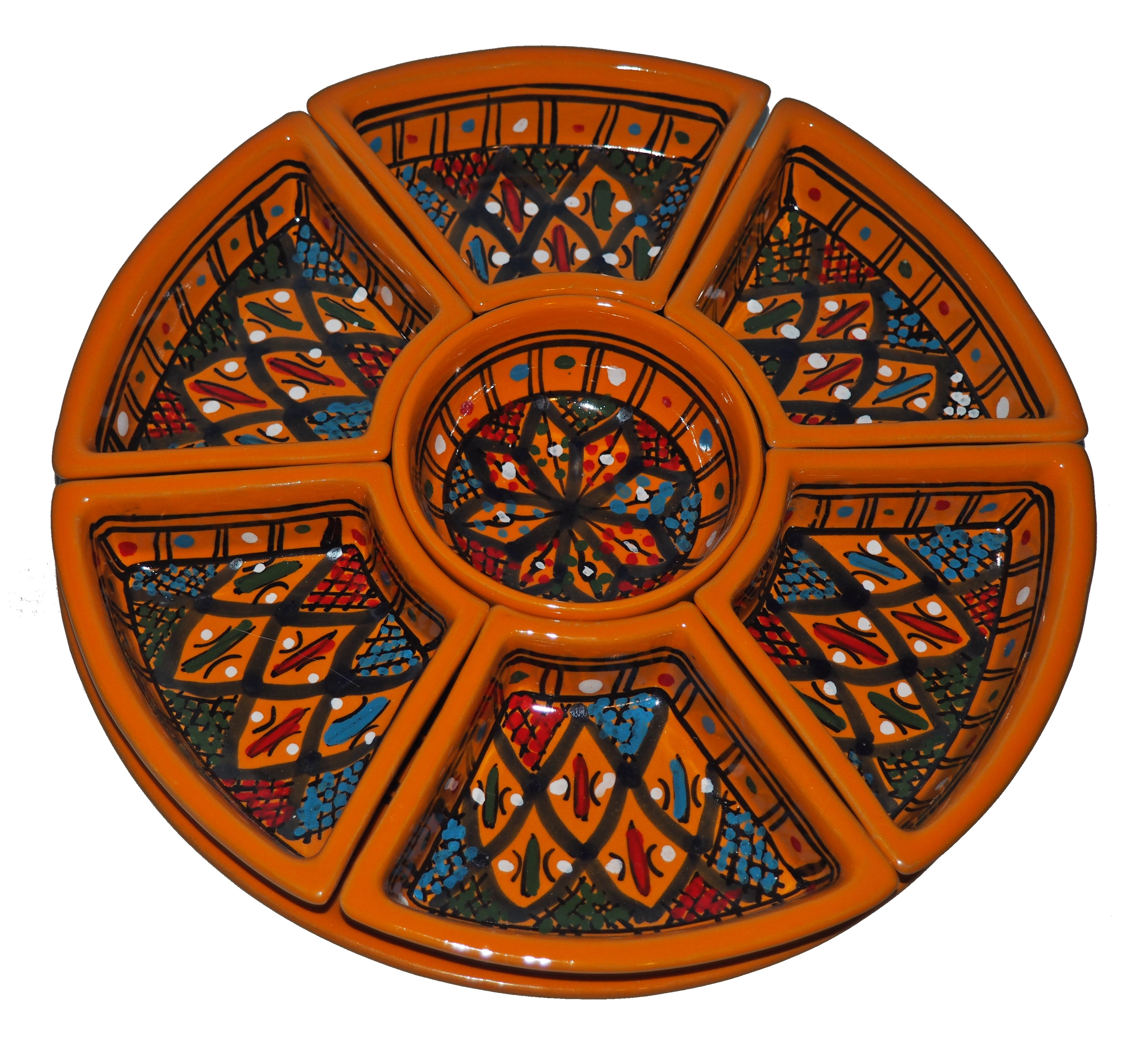 Arabski, ręcznie wykonany i ręcznie malowany zestaw na przystawki, przekąski, dodatki. Może także stanowić talerz dla wieloskładnikowego dania.