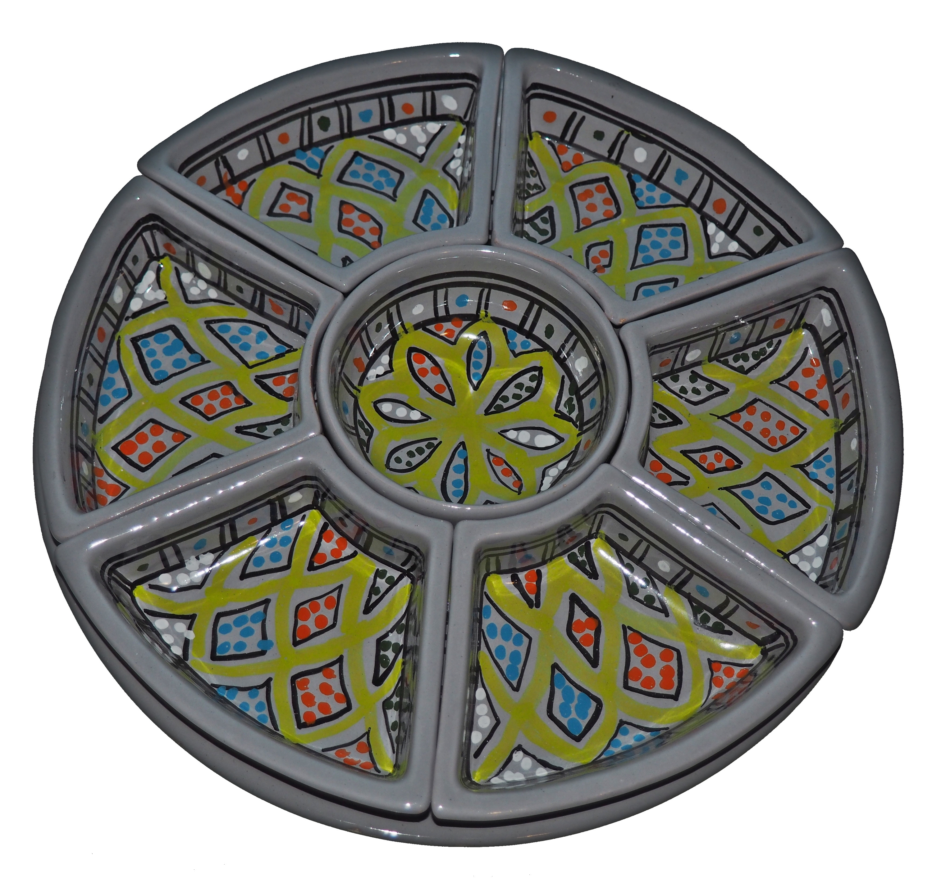 Arabski, ręcznie wykonany i ręcznie malowany zestaw na przystawki, przekąski, dodatki. Może także stanowić talerz dla wieloskładnikowego dania.