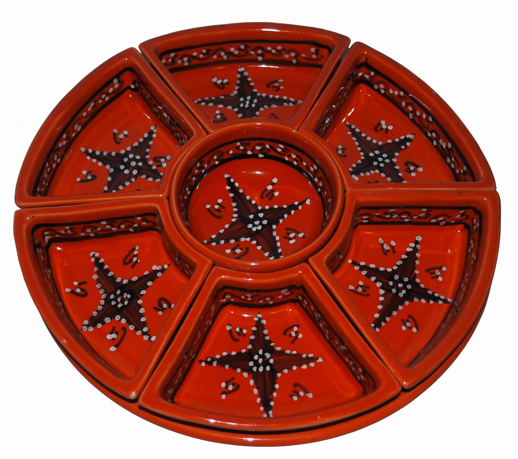 Arabski, ręcznie wykonany i ręcznie malowany zestaw na przystawki, przekąski, dodatki. Może także stanowić talerz dla wieloskładnikowego dania.