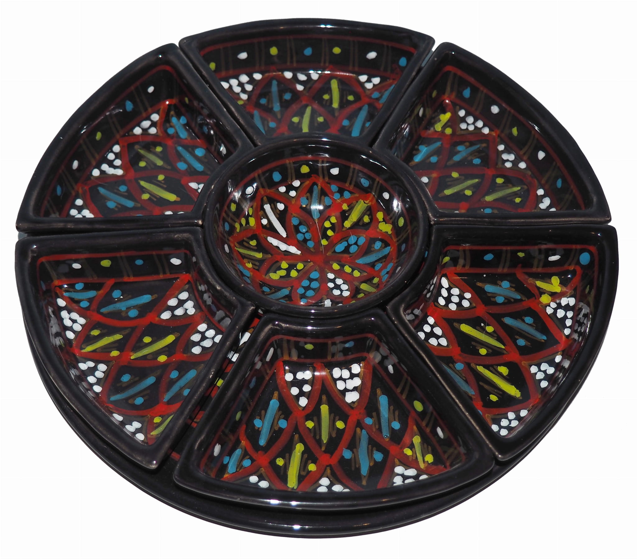 Arabski, ręcznie wykonany i ręcznie malowany zestaw na przystawki, przekąski, dodatki. Może także stanowić talerz dla wieloskładnikowego dania.
