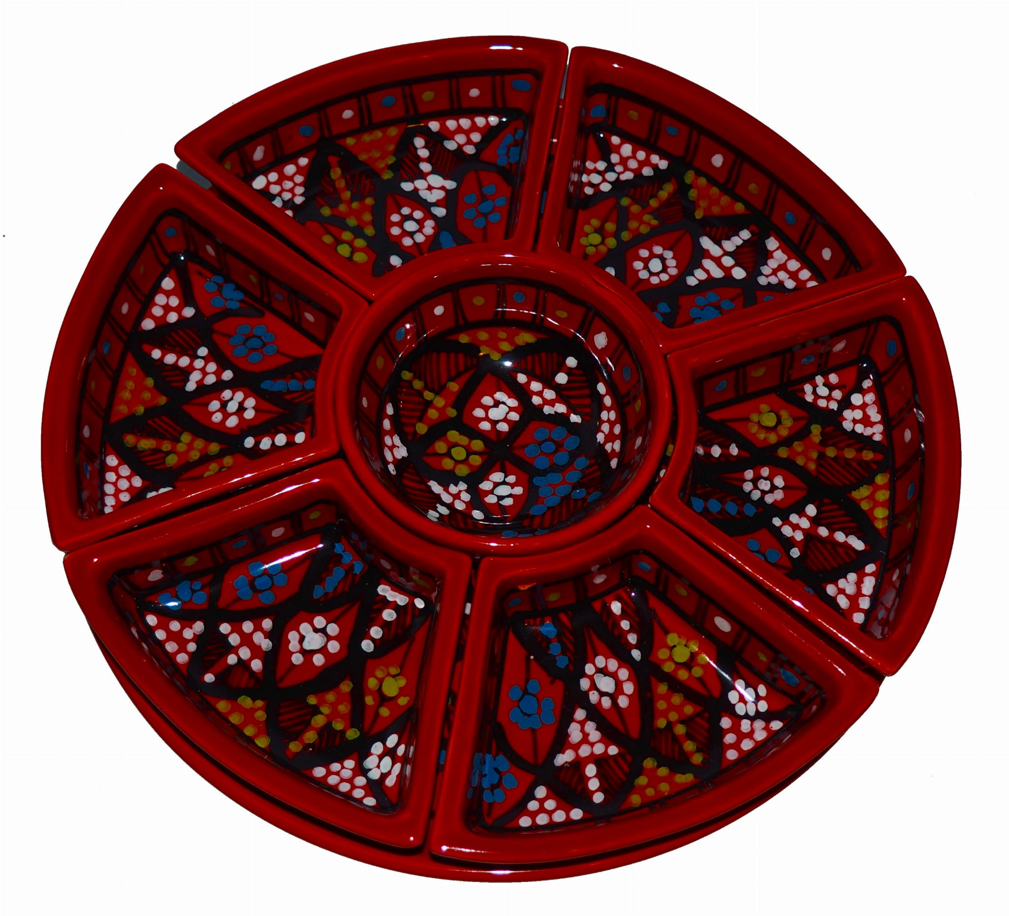 Arabski, ręcznie wykonany i ręcznie malowany zestaw na przystawki, przekąski, dodatki. Może także stanowić talerz dla wieloskładnikowego dania.