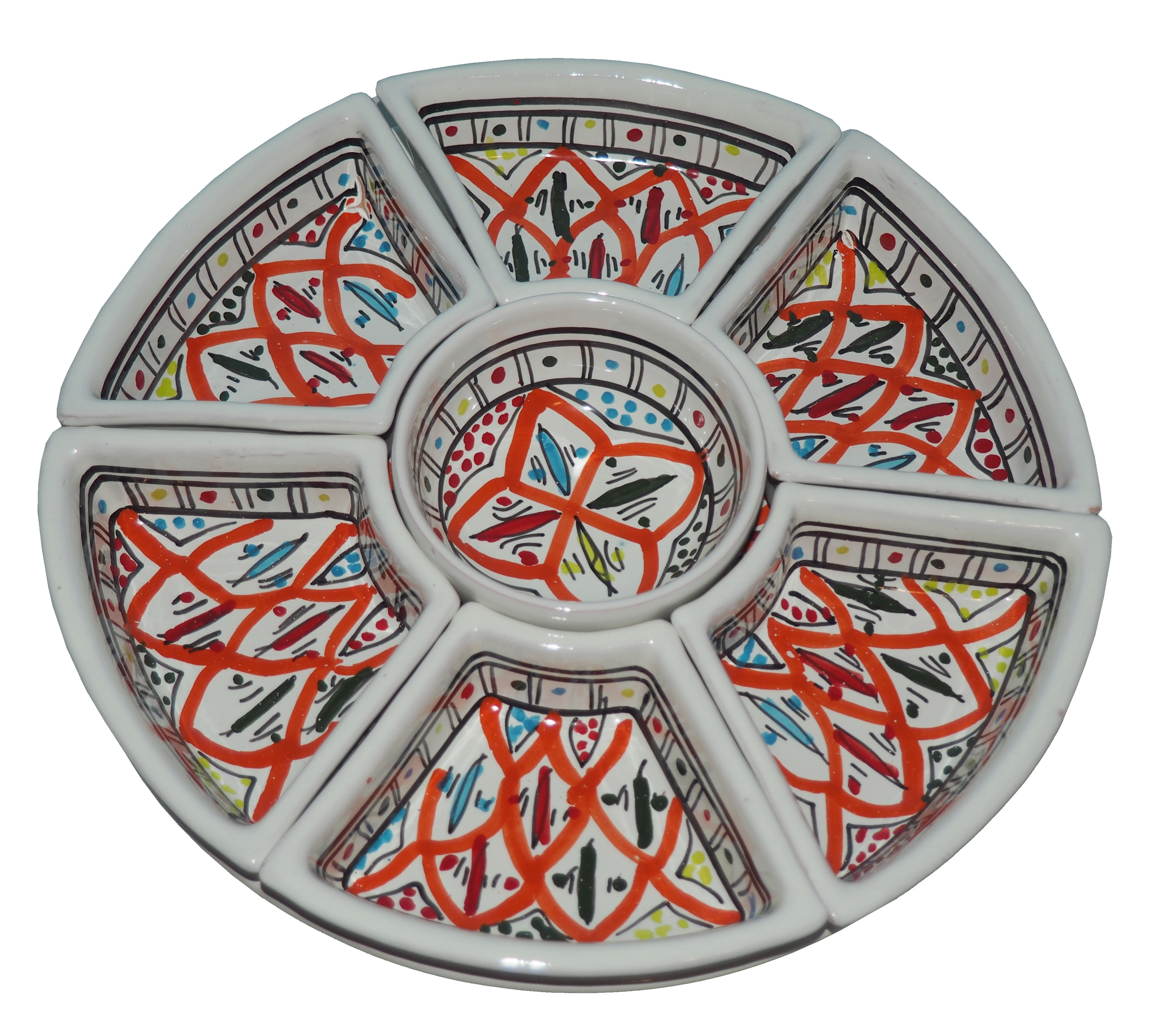 Arabski, ręcznie wykonany i ręcznie malowany zestaw na przystawki, przekąski, dodatki. Może także stanowić talerz dla wieloskładnikowego dania.