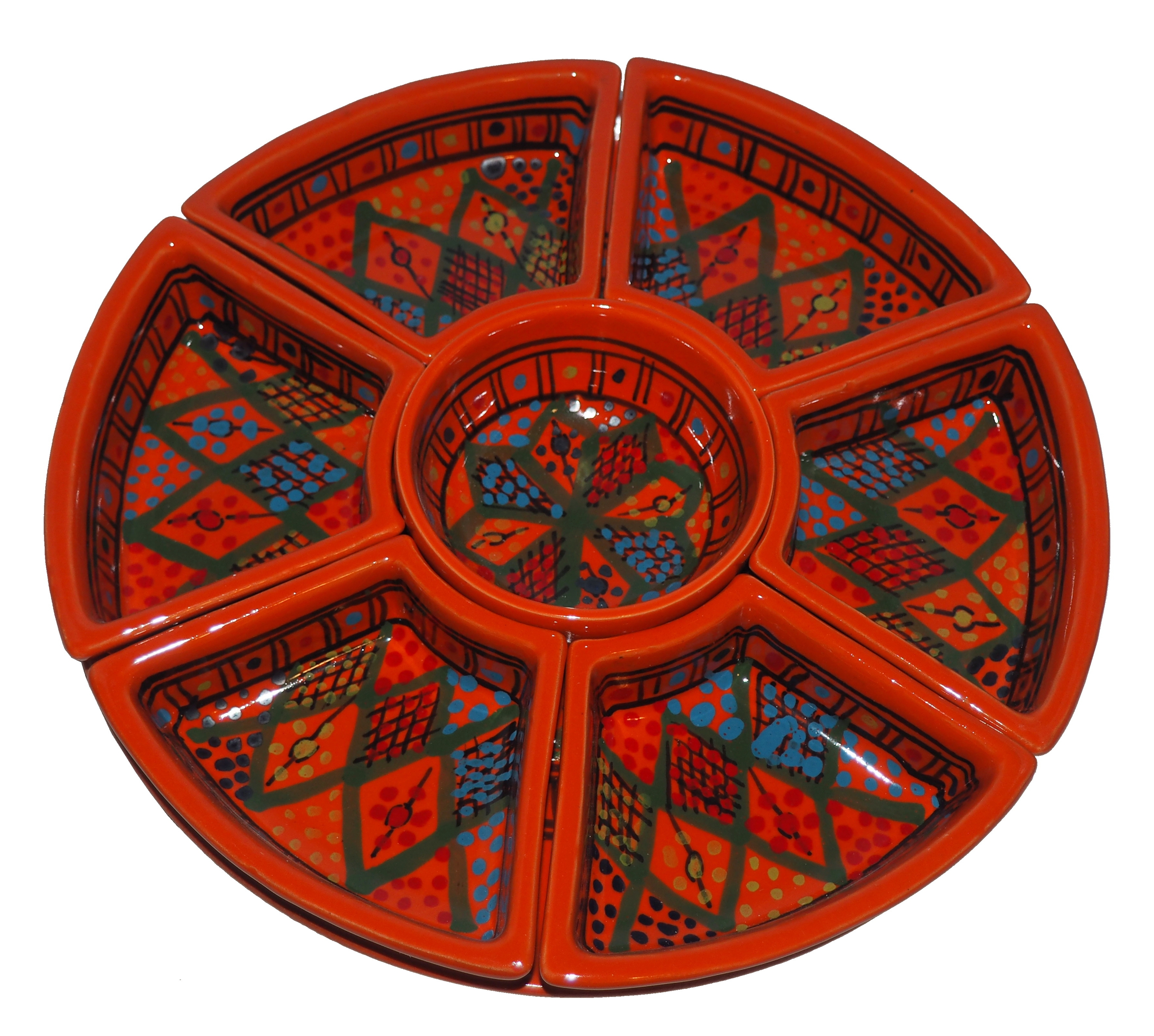 Arabski, ręcznie wykonany i ręcznie malowany zestaw na przystawki, przekąski, dodatki. Może także stanowić talerz dla wieloskładnikowego dania.