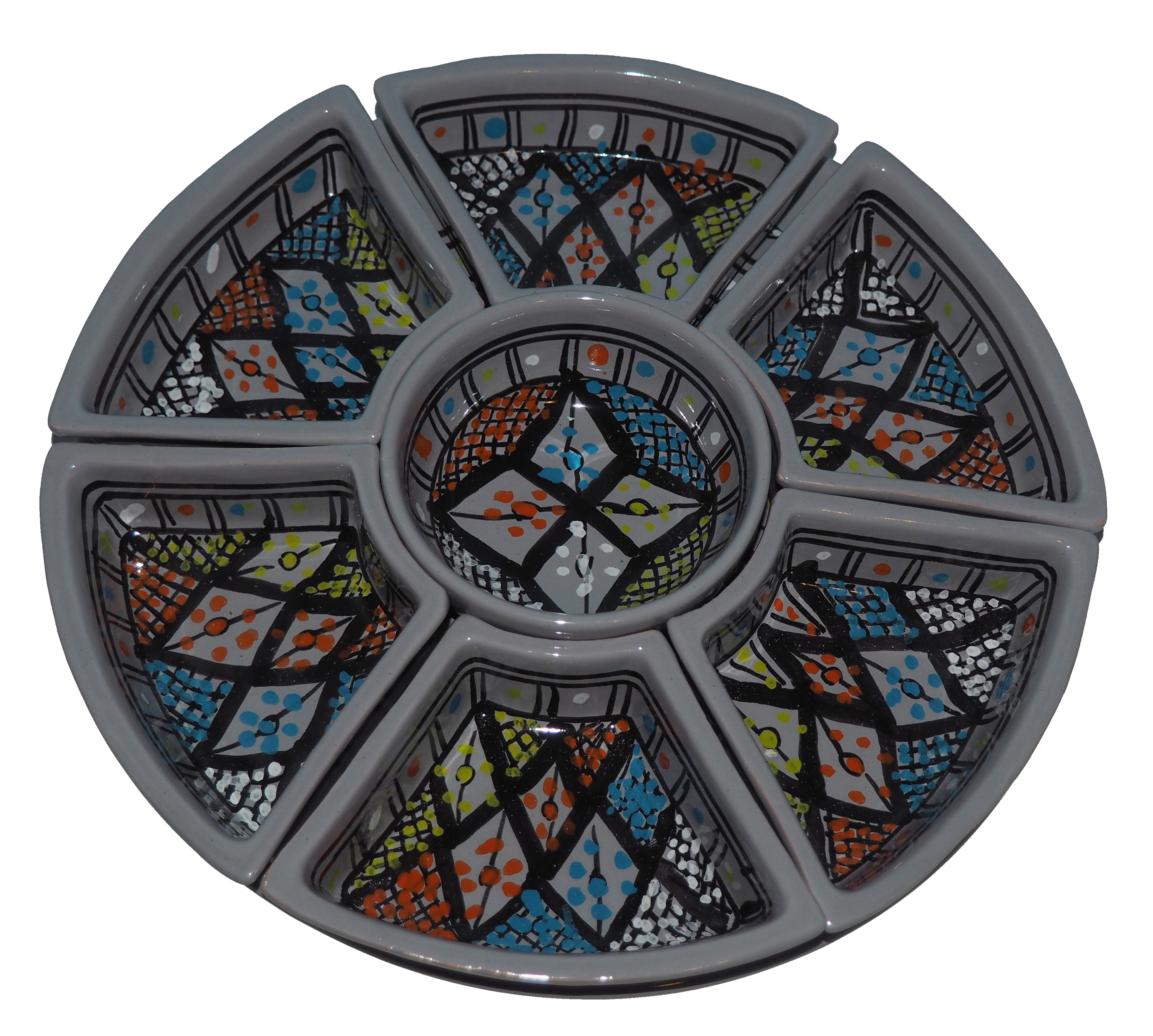 Arabski, ręcznie wykonany i ręcznie malowany zestaw na przystawki, przekąski, dodatki. Może także stanowić talerz dla wieloskładnikowego dania.