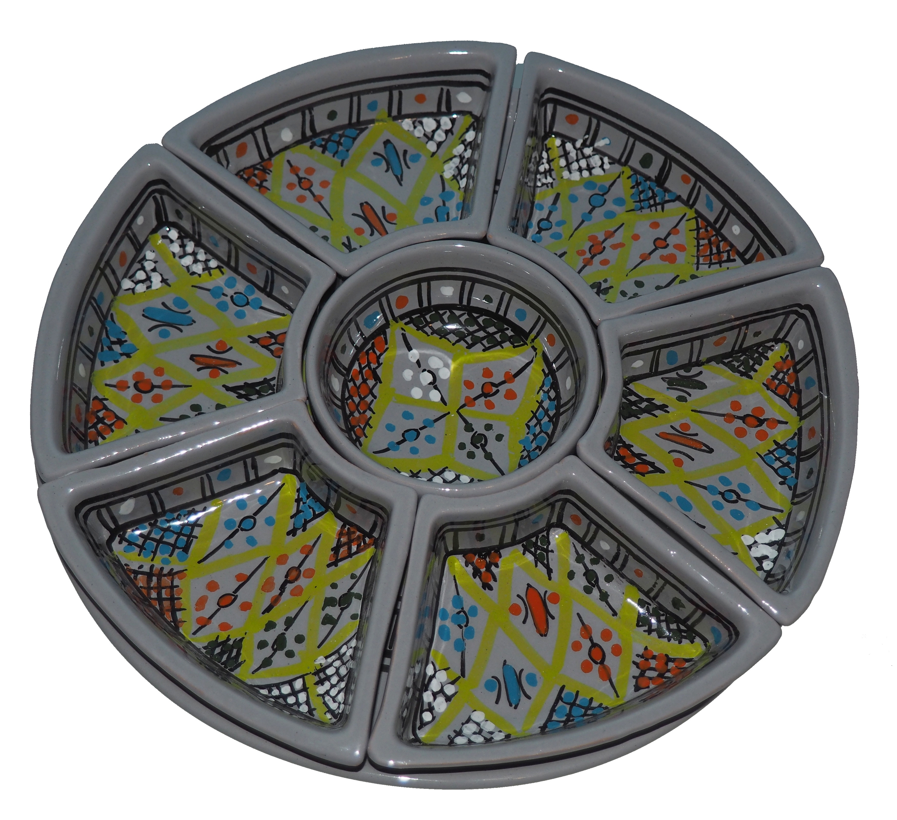 Arabski, ręcznie wykonany i ręcznie malowany zestaw na przystawki, przekąski, dodatki. Może także stanowić talerz dla wieloskładnikowego dania.