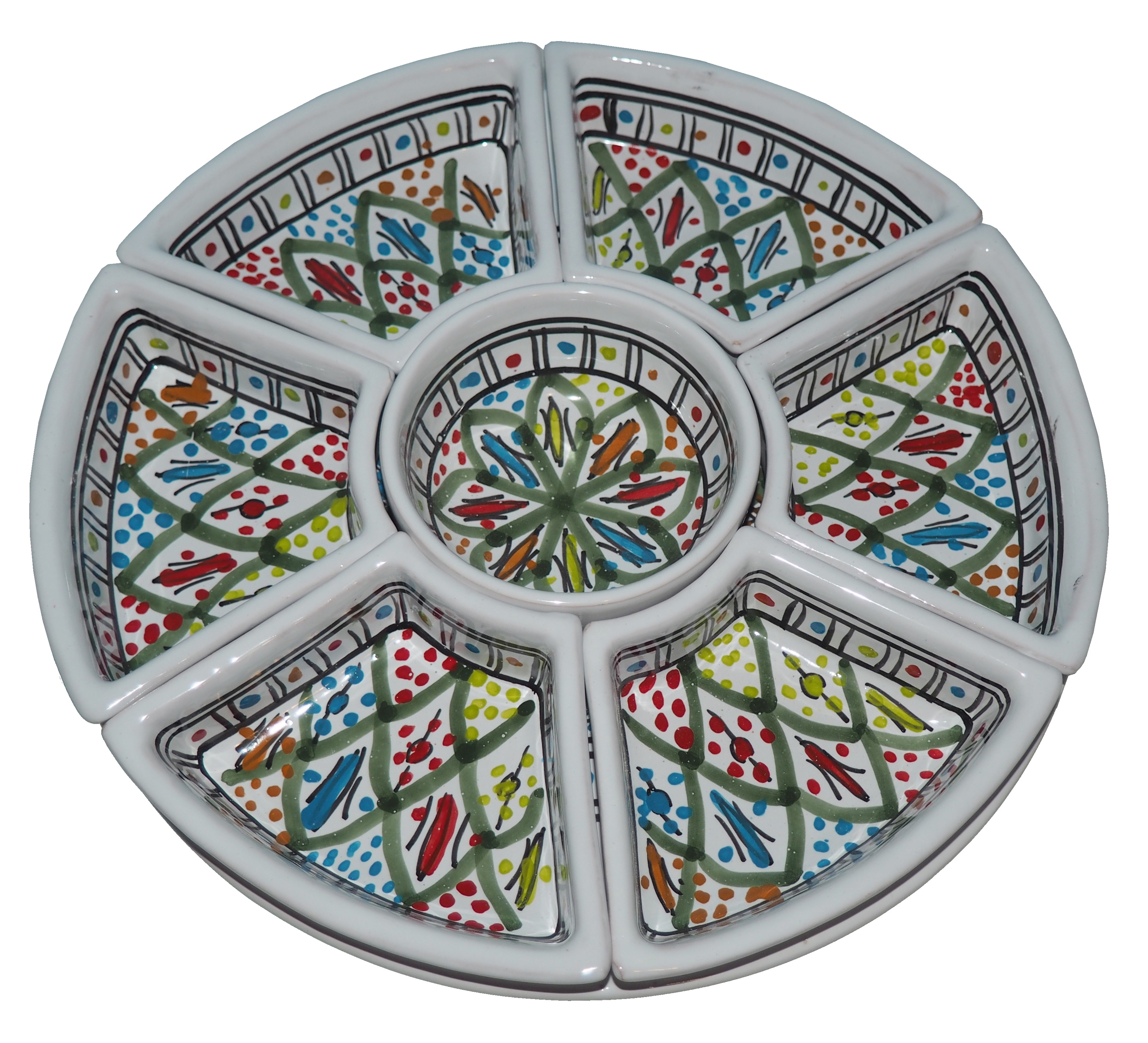 Arabski, ręcznie wykonany i ręcznie malowany zestaw na przystawki, przekąski, dodatki. Może także stanowić talerz dla wieloskładnikowego dania.