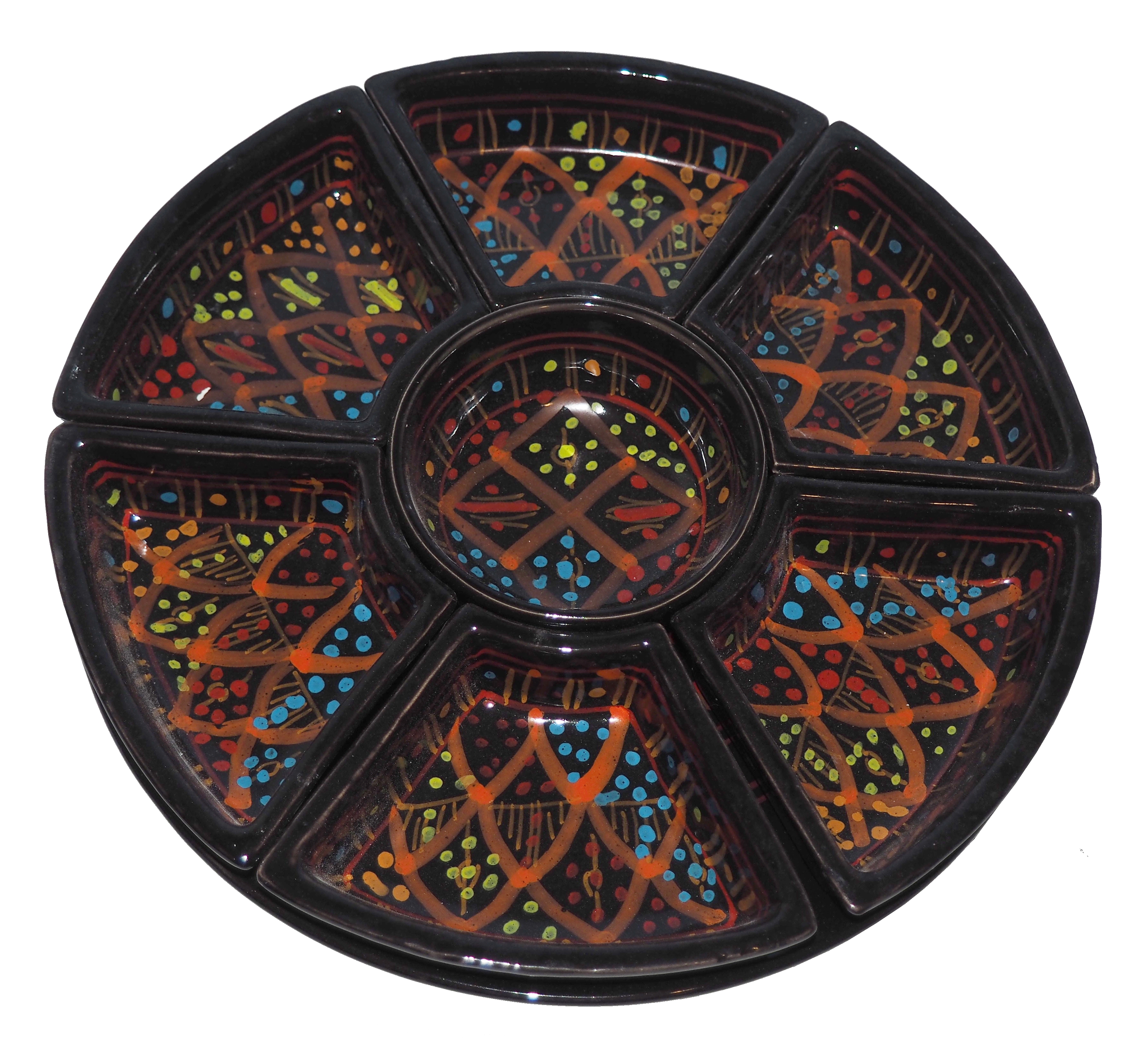 Arabski, ręcznie wykonany i ręcznie malowany zestaw na przystawki, przekąski, dodatki. Może także stanowić talerz dla wieloskładnikowego dania.