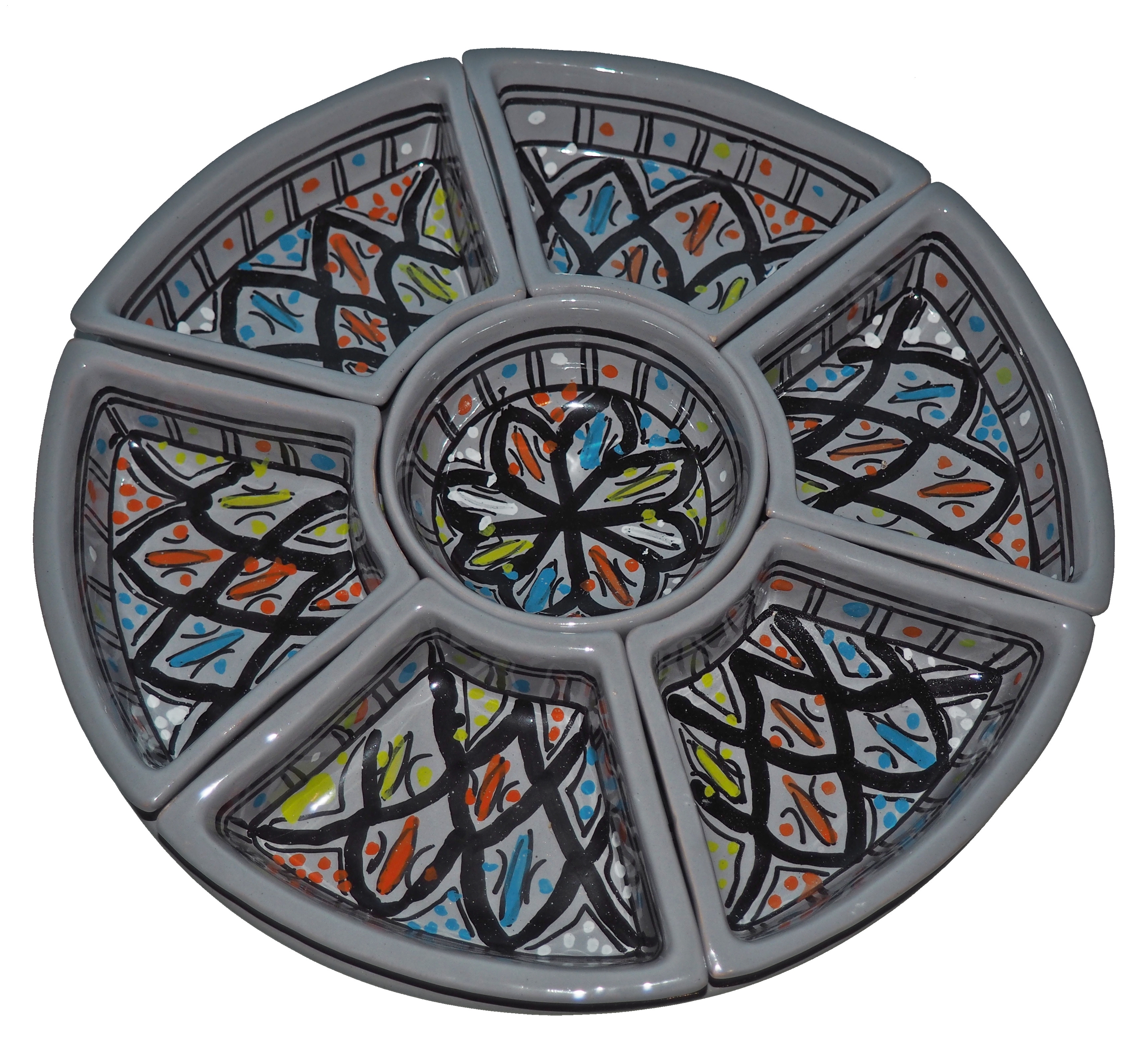 Arabski, ręcznie wykonany i ręcznie malowany zestaw na przystawki, przekąski, dodatki. Może także stanowić talerz dla wieloskładnikowego dania.