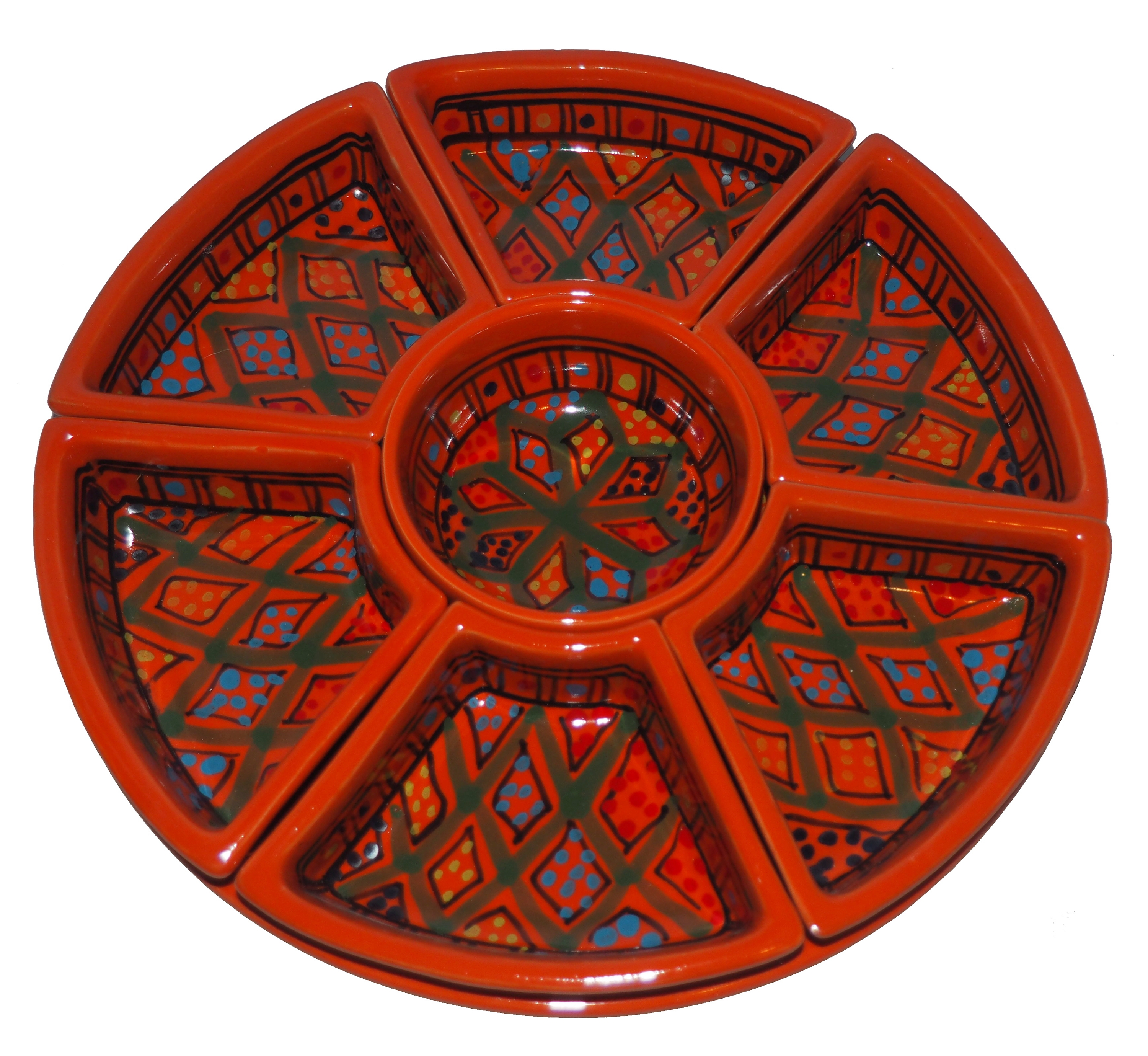 Arabski, ręcznie wykonany i ręcznie malowany zestaw na przystawki, przekąski, dodatki. Może także stanowić talerz dla wieloskładnikowego dania.