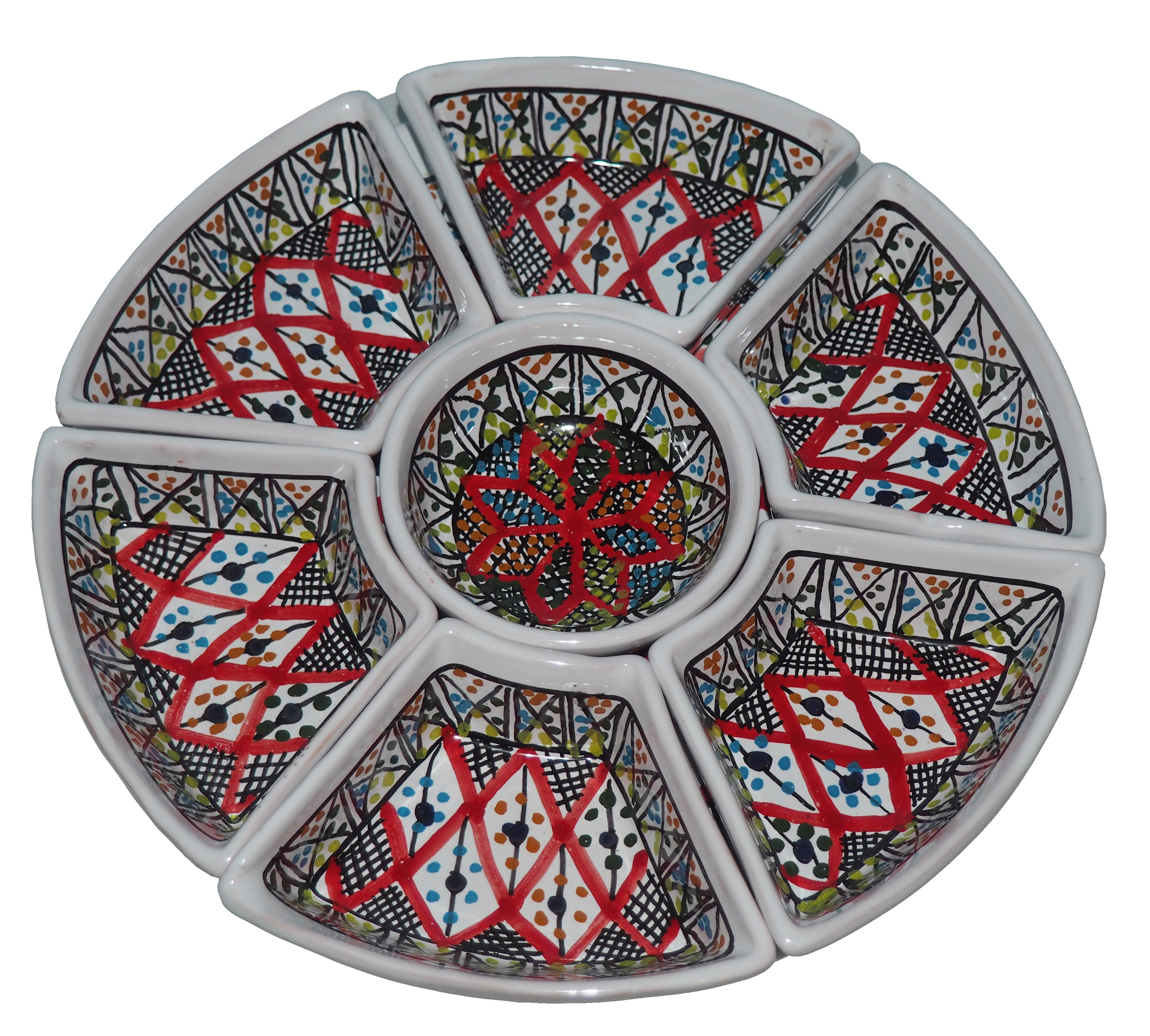 Arabski, ręcznie wykonany i ręcznie malowany zestaw na przystawki, przekąski, dodatki. Może także stanowić talerz dla wieloskładnikowego dania.