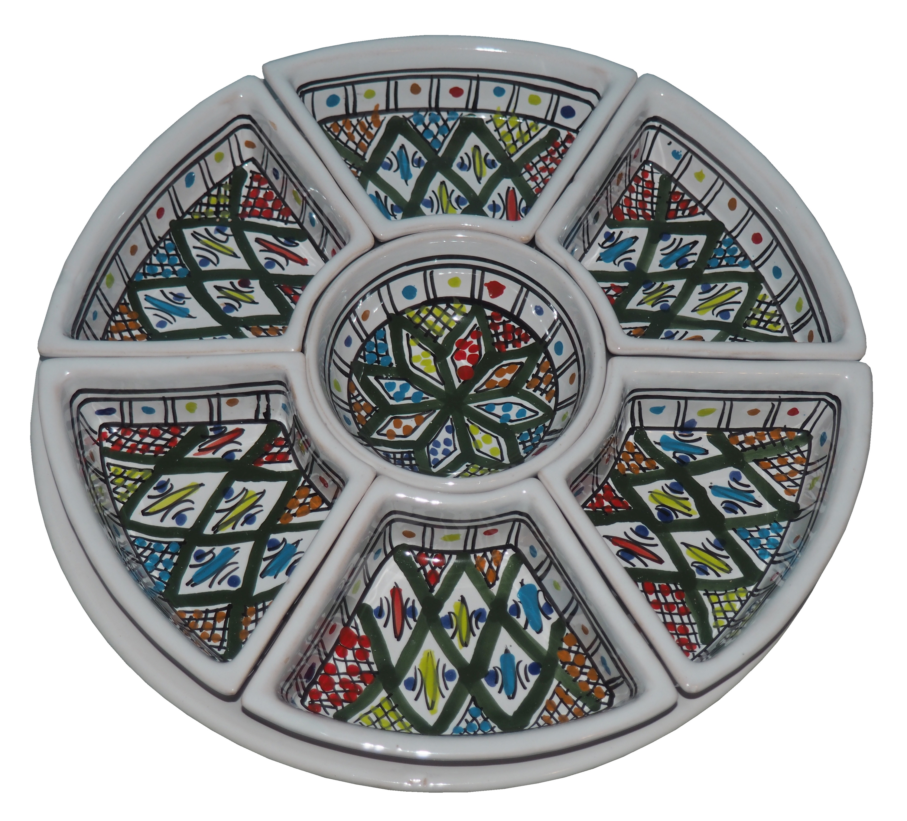 Arabski, ręcznie wykonany i ręcznie malowany zestaw na przystawki, przekąski, dodatki. Może także stanowić talerz dla wieloskładnikowego dania.
