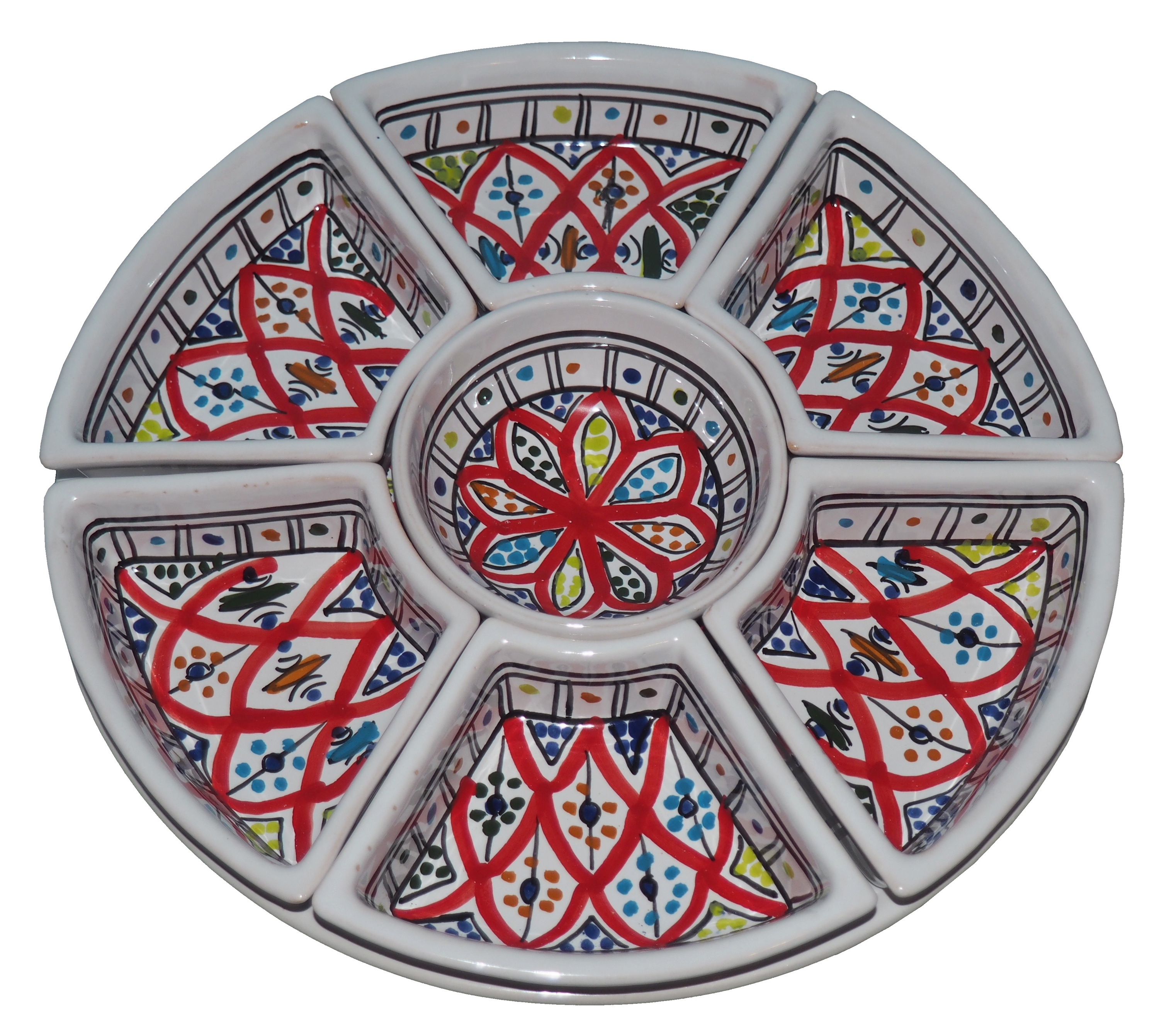 Arabski, ręcznie wykonany i ręcznie malowany zestaw na przystawki, przekąski, dodatki. Może także stanowić talerz dla wieloskładnikowego dania.