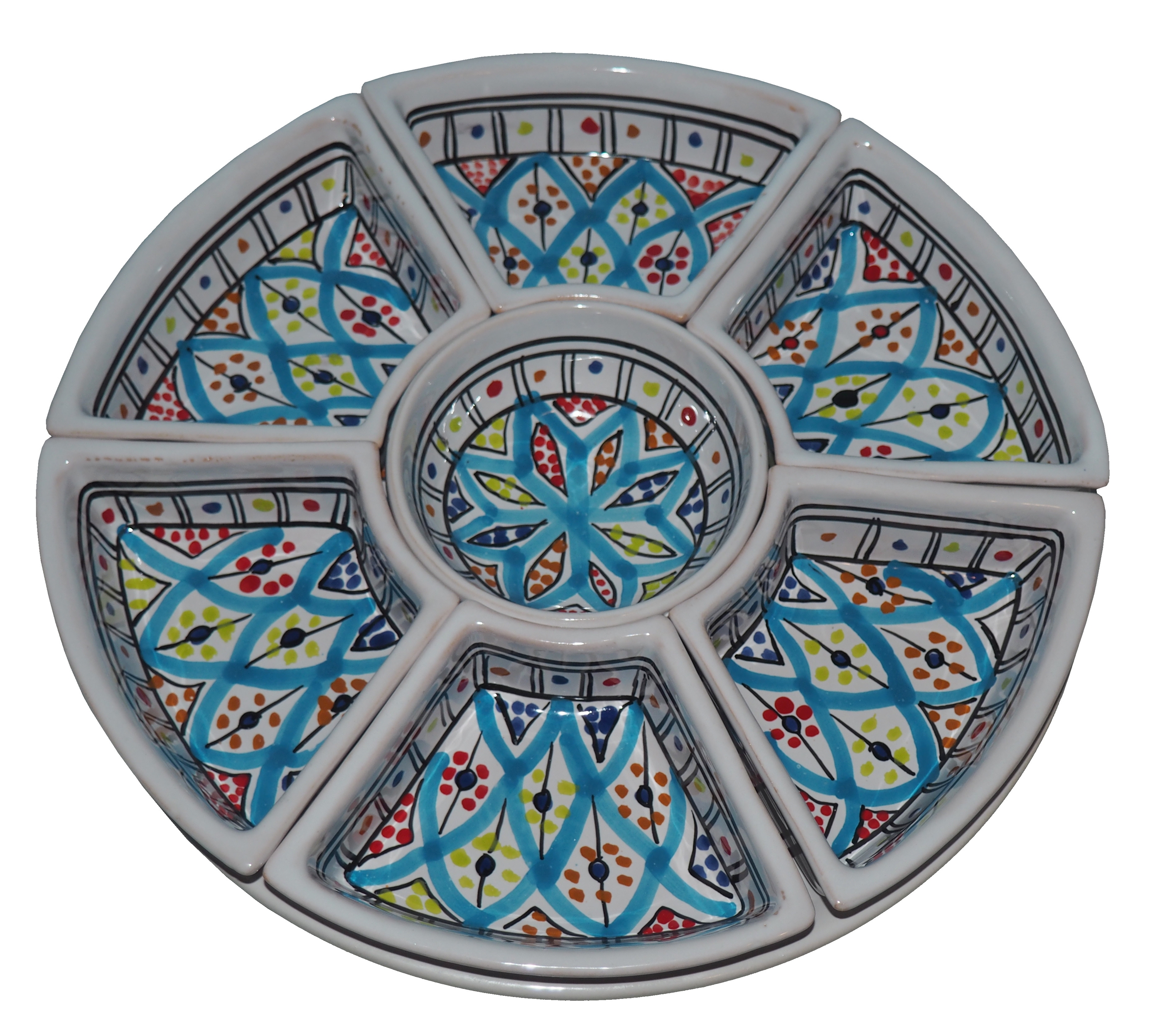 Arabski, ręcznie wykonany i ręcznie malowany zestaw na przystawki, przekąski, dodatki. Może także stanowić talerz dla wieloskładnikowego dania.