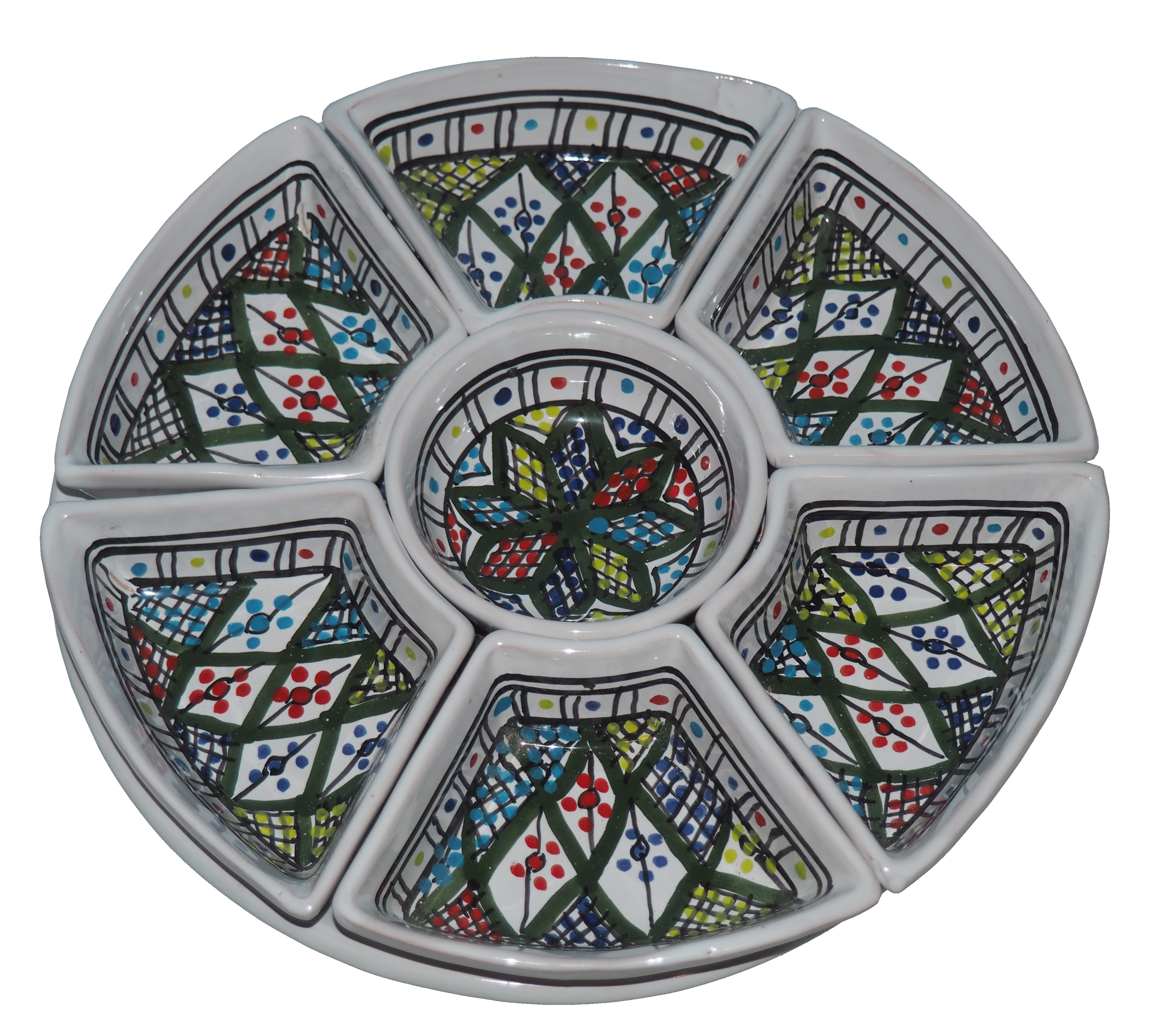 Arabski, ręcznie wykonany i ręcznie malowany zestaw na przystawki, przekąski, dodatki. Może także stanowić talerz dla wieloskładnikowego dania.