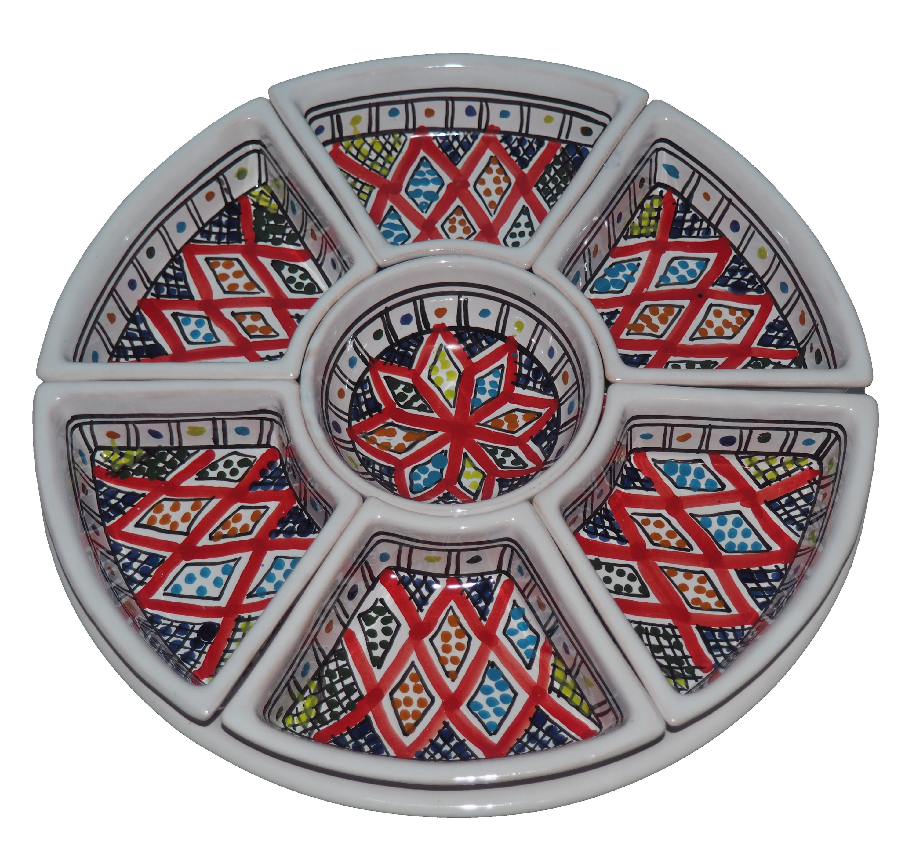 Arabski, ręcznie wykonany i ręcznie malowany zestaw na przystawki, przekąski, dodatki. Może także stanowić talerz dla wieloskładnikowego dania.