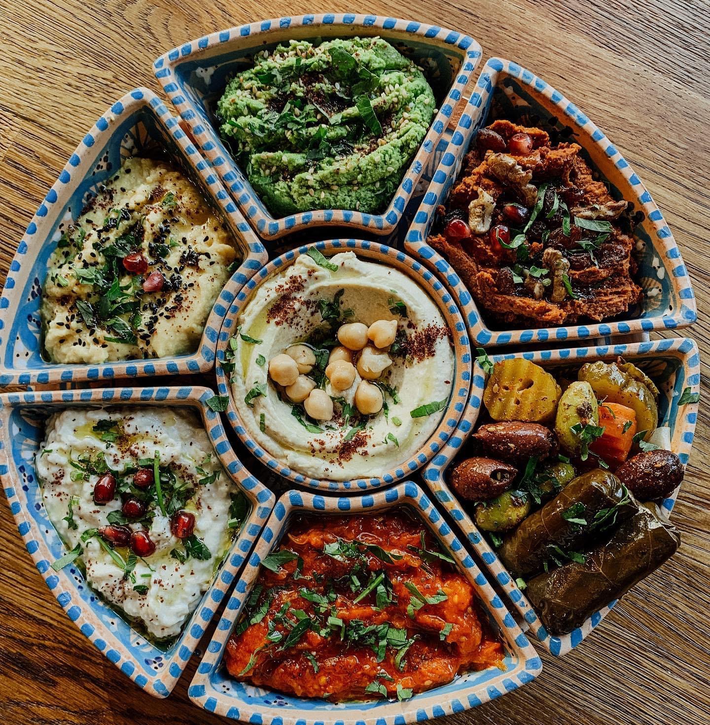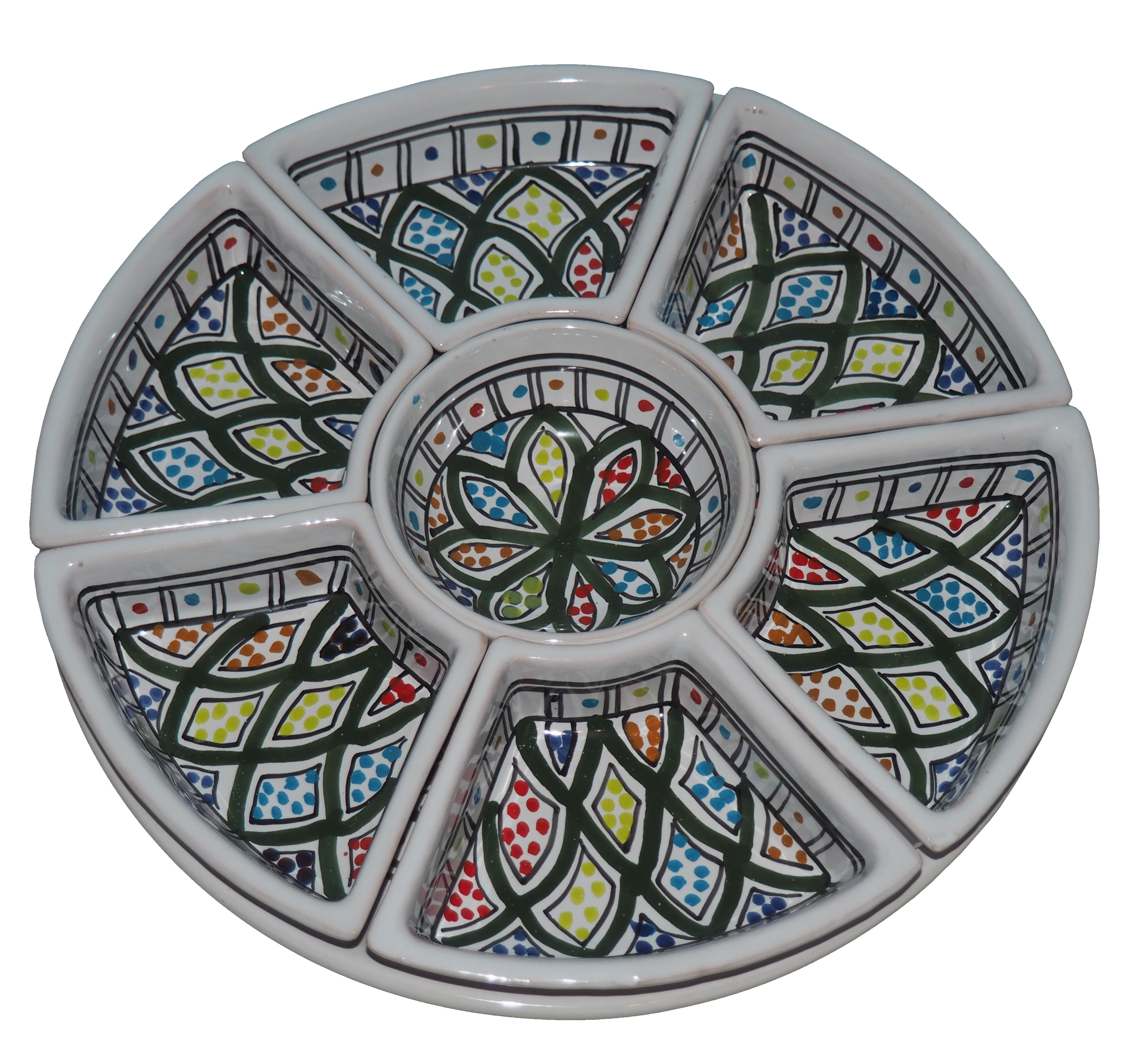 Arabski, ręcznie wykonany i ręcznie malowany zestaw na przystawki, przekąski, dodatki. Może także stanowić talerz dla wieloskładnikowego dania.