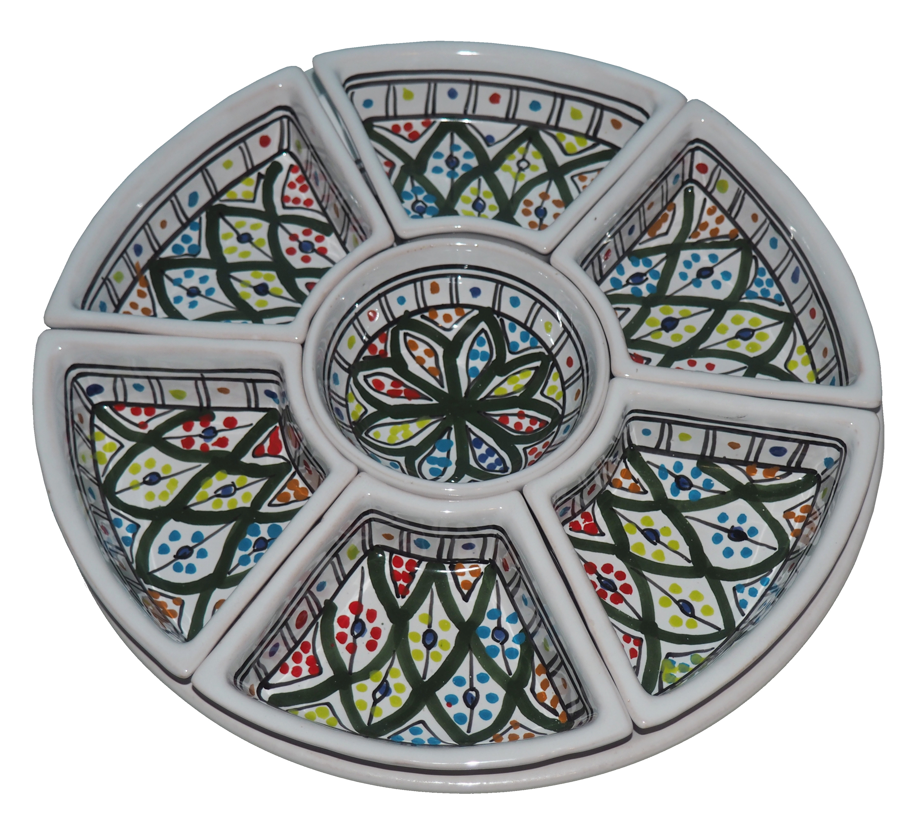 Arabski, ręcznie wykonany i ręcznie malowany zestaw na przystawki, przekąski, dodatki. Może także stanowić talerz dla wieloskładnikowego dania.