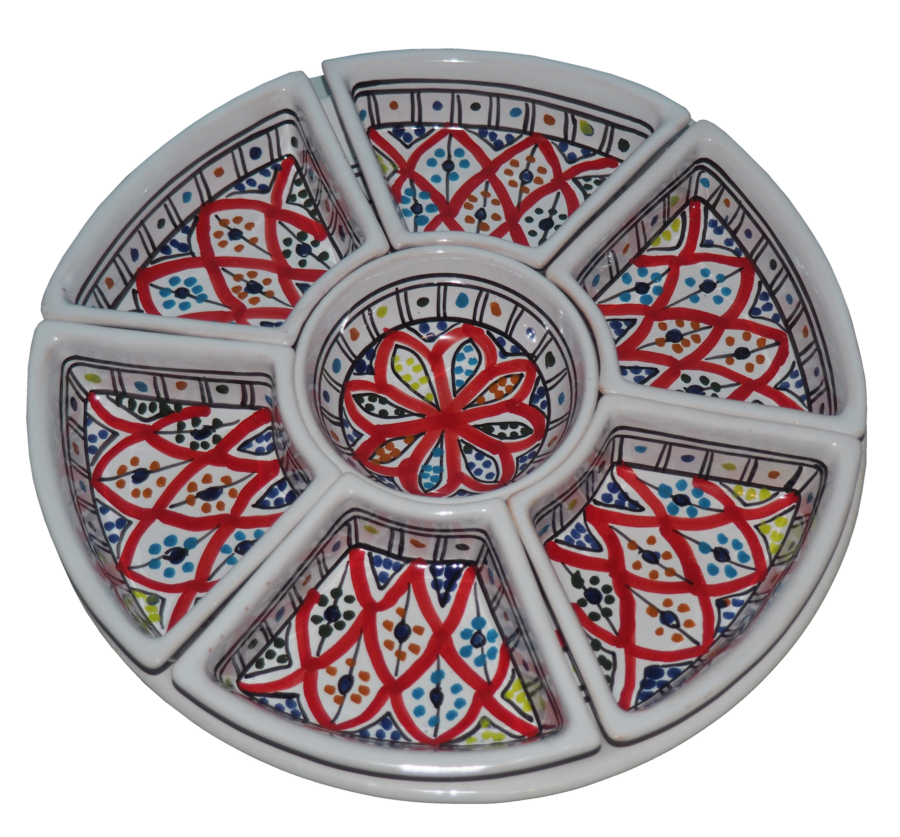 Arabski, ręcznie wykonany i ręcznie malowany zestaw na przystawki, przekąski, dodatki. Może także stanowić talerz dla wieloskładnikowego dania.