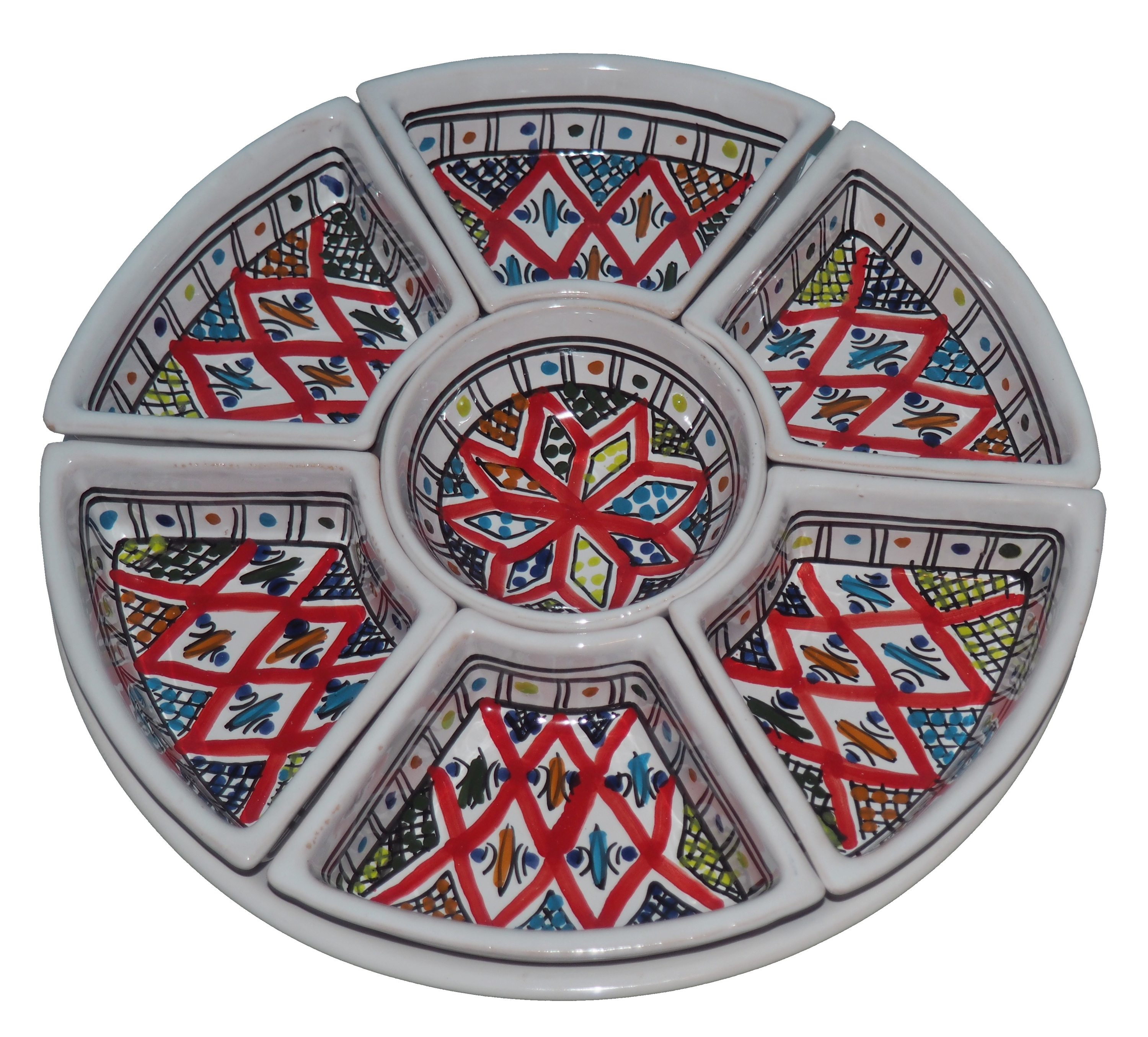 Arabski, ręcznie wykonany i ręcznie malowany zestaw na przystawki, przekąski, dodatki. Może także stanowić talerz dla wieloskładnikowego dania.