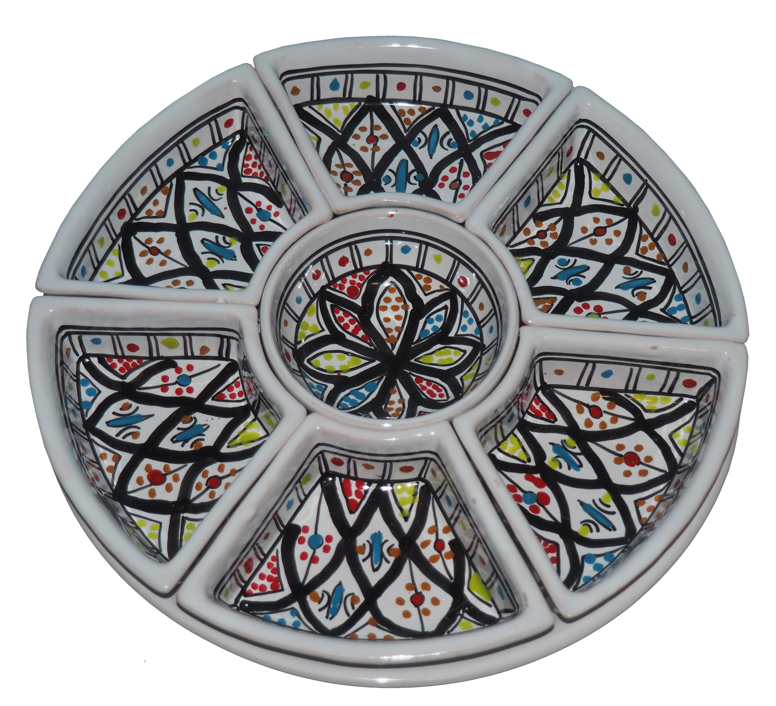Arabski, ręcznie wykonany i ręcznie malowany zestaw na przystawki, przekąski, dodatki. Może także stanowić talerz dla wieloskładnikowego dania.
