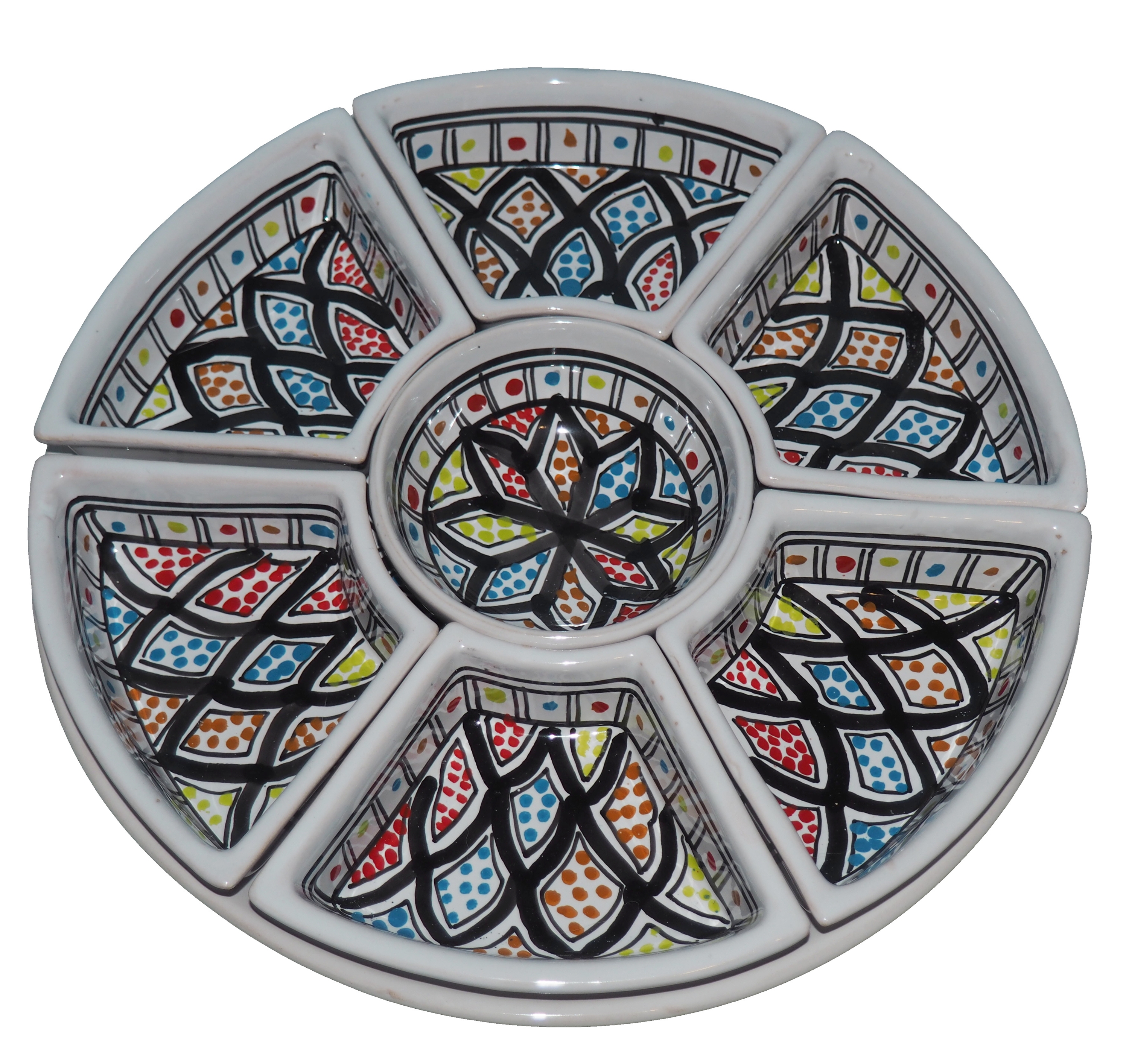 Arabski, ręcznie wykonany i ręcznie malowany zestaw na przystawki, przekąski, dodatki. Może także stanowić talerz dla wieloskładnikowego dania.