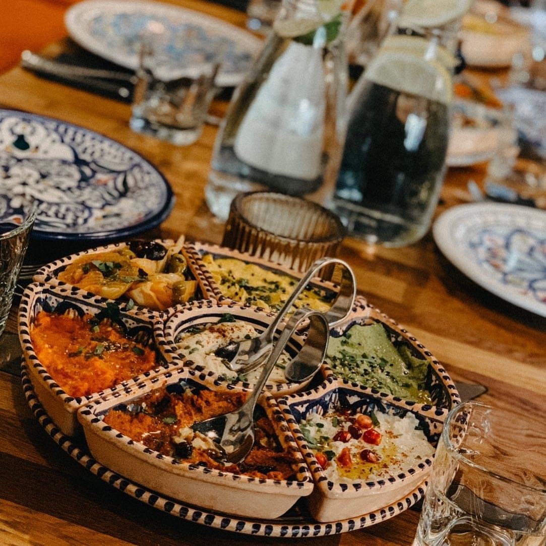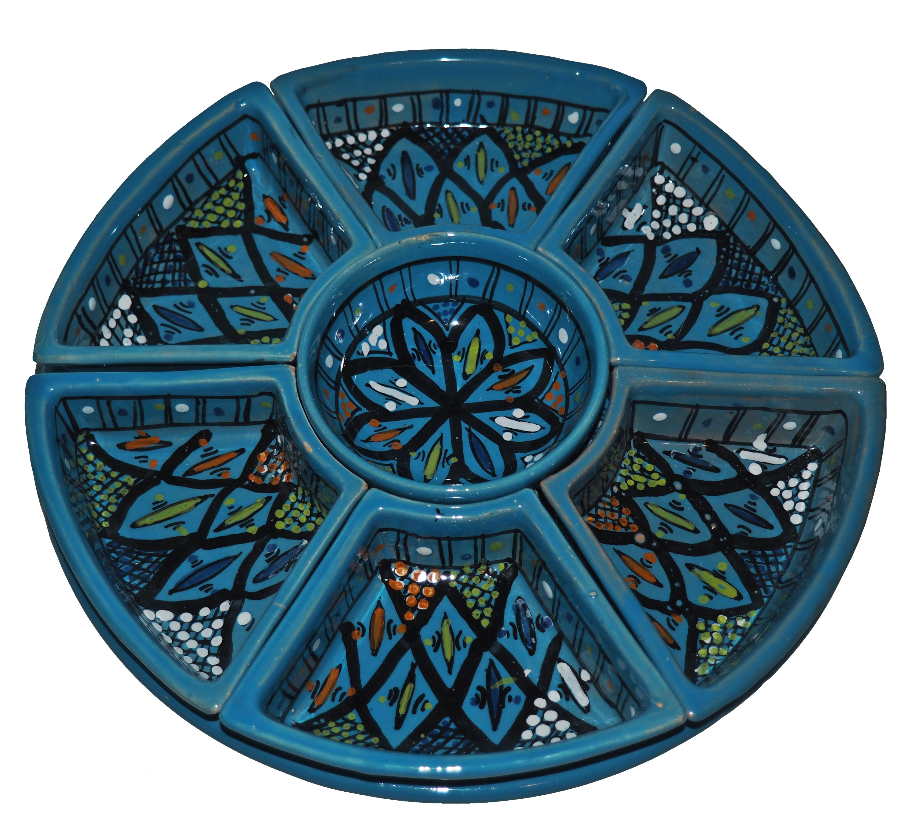 Arabski, ręcznie wykonany i ręcznie malowany zestaw na przystawki, przekąski, dodatki. Może także stanowić talerz dla wieloskładnikowego dania.
