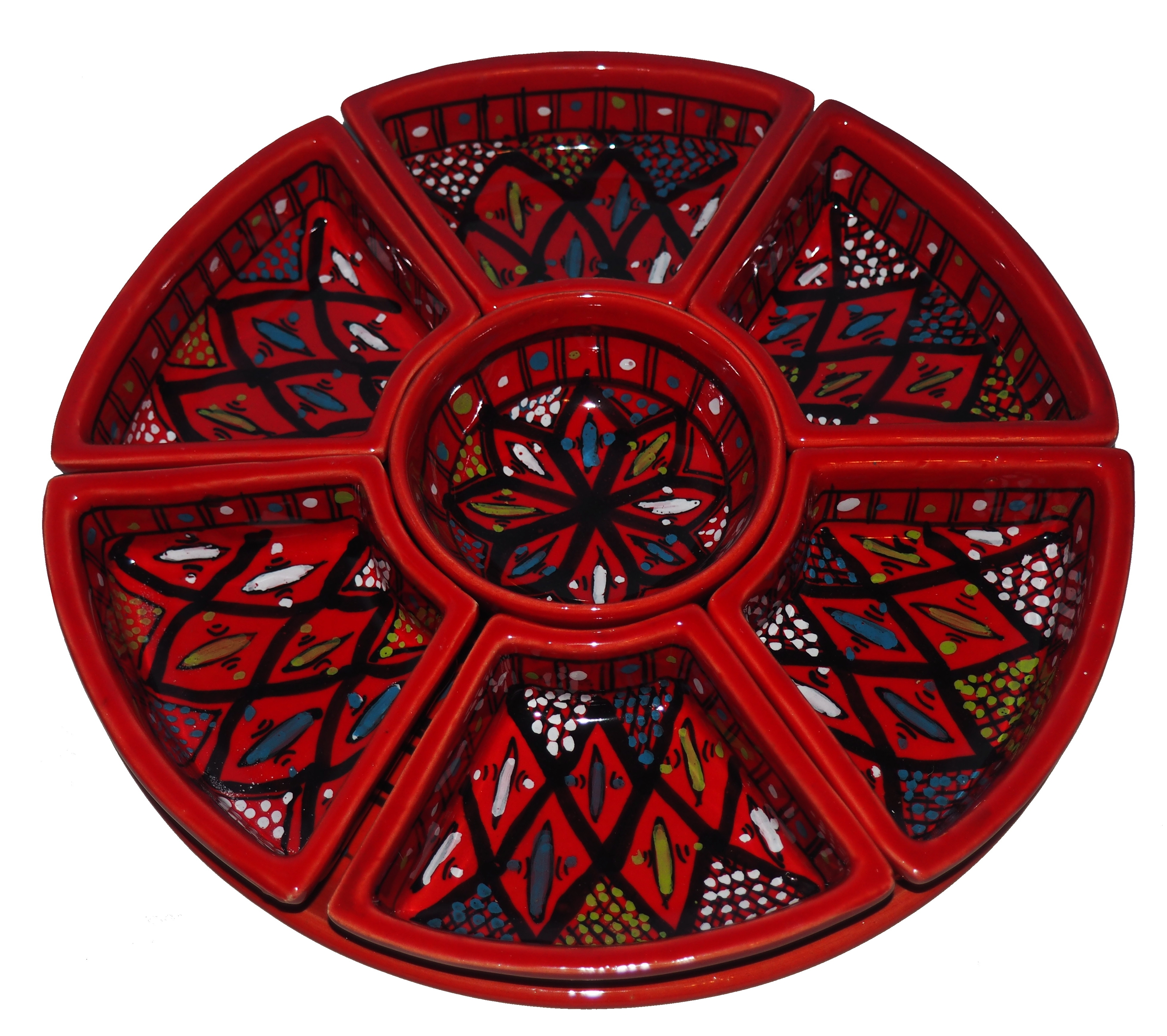 Arabski, ręcznie wykonany i ręcznie malowany zestaw na przystawki, przekąski, dodatki. Może także stanowić talerz dla wieloskładnikowego dania.