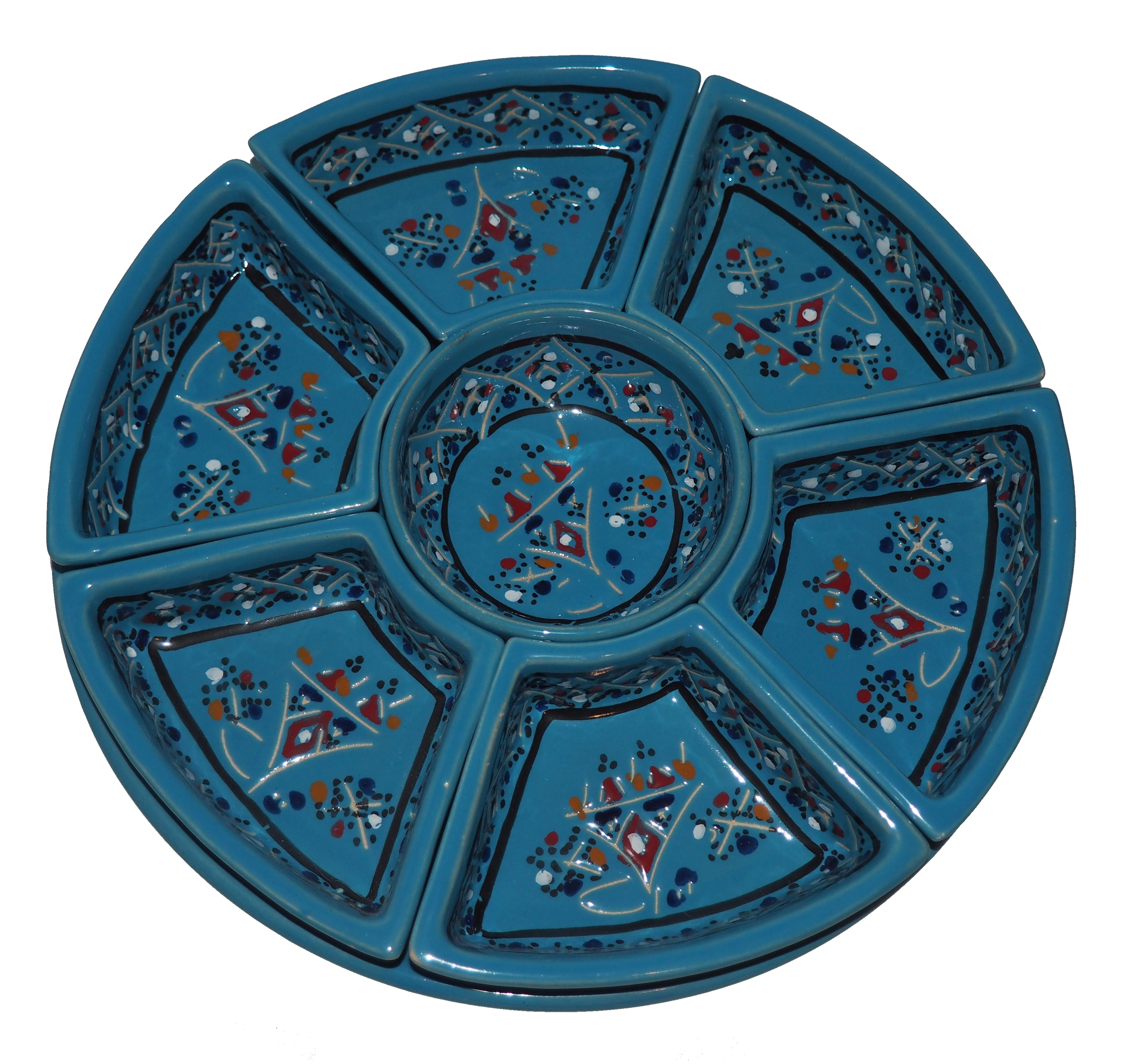Arabski, ręcznie wykonany i ręcznie malowany zestaw na przystawki, przekąski, dodatki. Może także stanowić talerz dla wieloskładnikowego dania.