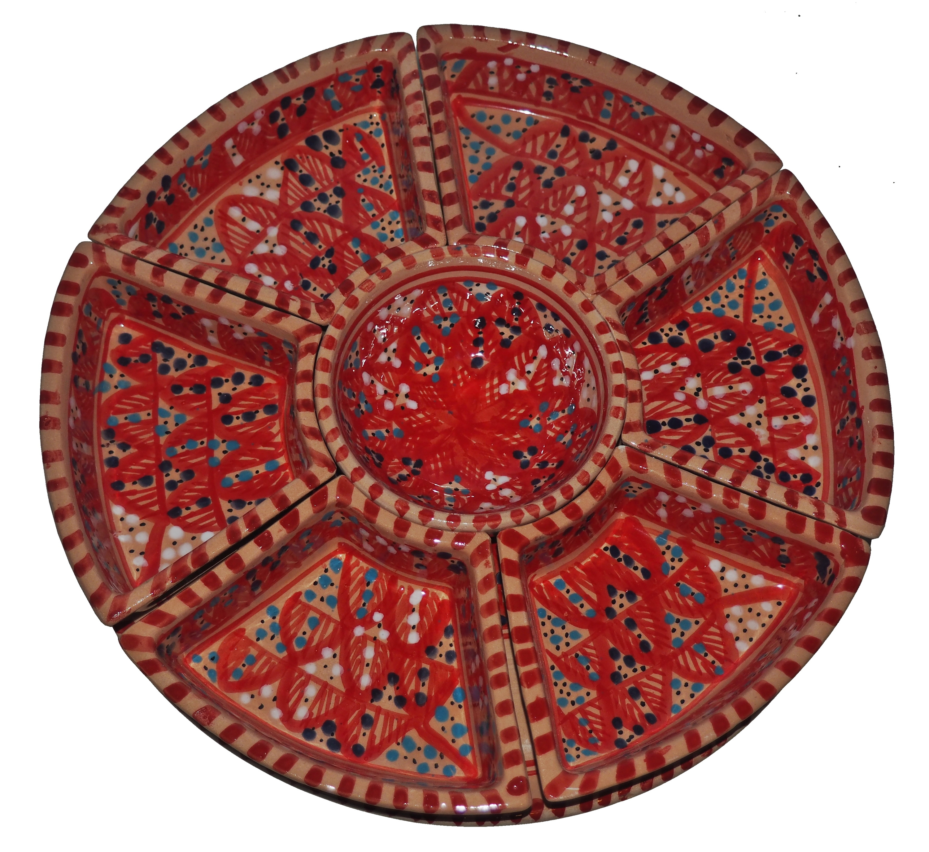 Arabski, ręcznie wykonany i ręcznie malowany zestaw na przystawki, przekąski, dodatki. Może także stanowić talerz dla wieloskładnikowego dania.