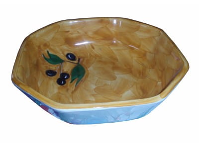 PRZEPIĘKNA, ORYGINALNA OŚMIOKĄTNA ARABSKA GŁĘBOKA MISA W BAJECZNEJ KOLORYSTYCE I PIĘKNYM WZORNICTWIE Z MOTYWEM OLIWKI, Z ZESTAWU " UTBAH ". DOSKONAŁE ZARÓWNO NA I DANIE, NA II (NP. SPAGHETTI), JAK TEŻ NA PRZEKĄSKI / PRZYSTAWKI DO DAŃ GŁÓWNYCH.