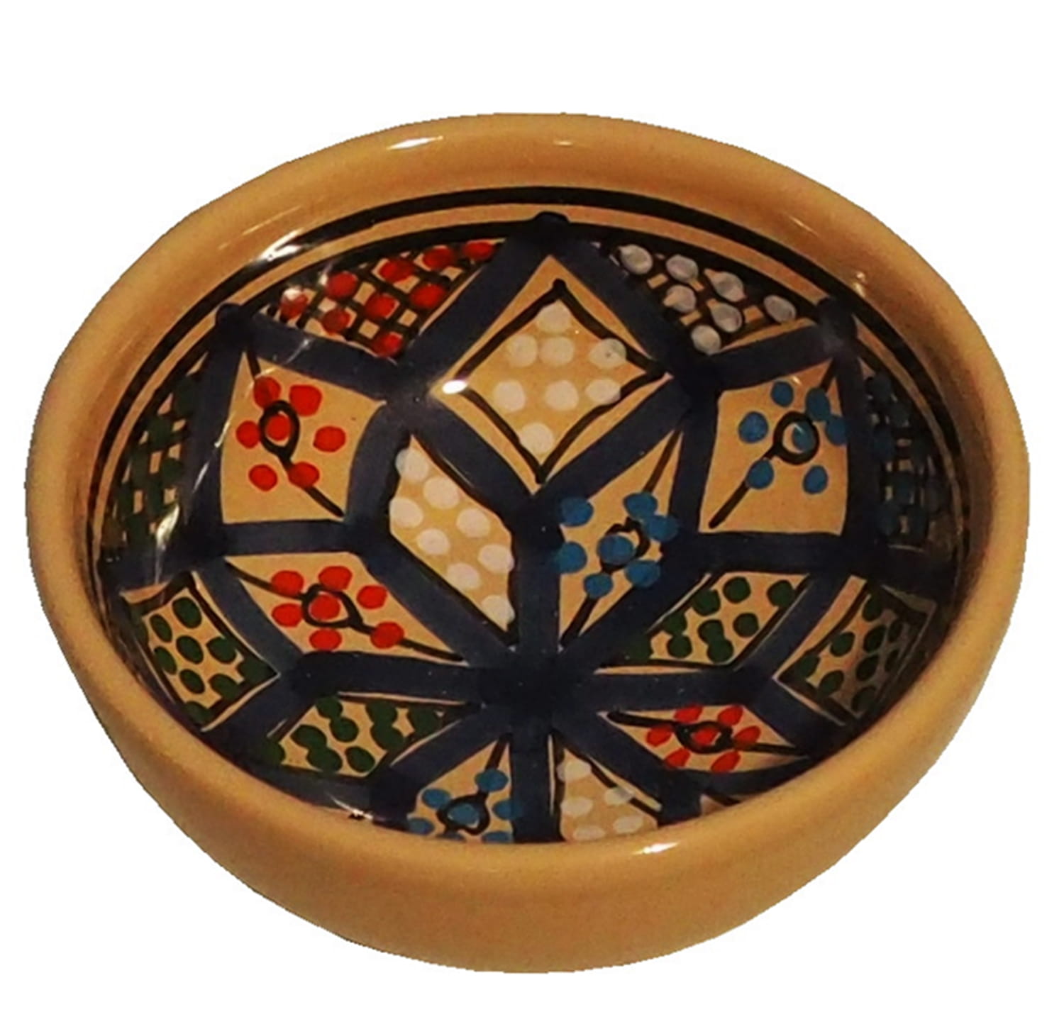 Zwraca uwagę piękne wzornictwo i bogata arabska kolorystyka. Miseczka malowana jest w berberyjskie wzory. Przepiękna, niebanalna ozdoba Twojego stołu - śliczna miseczka prosto z Tunezji.