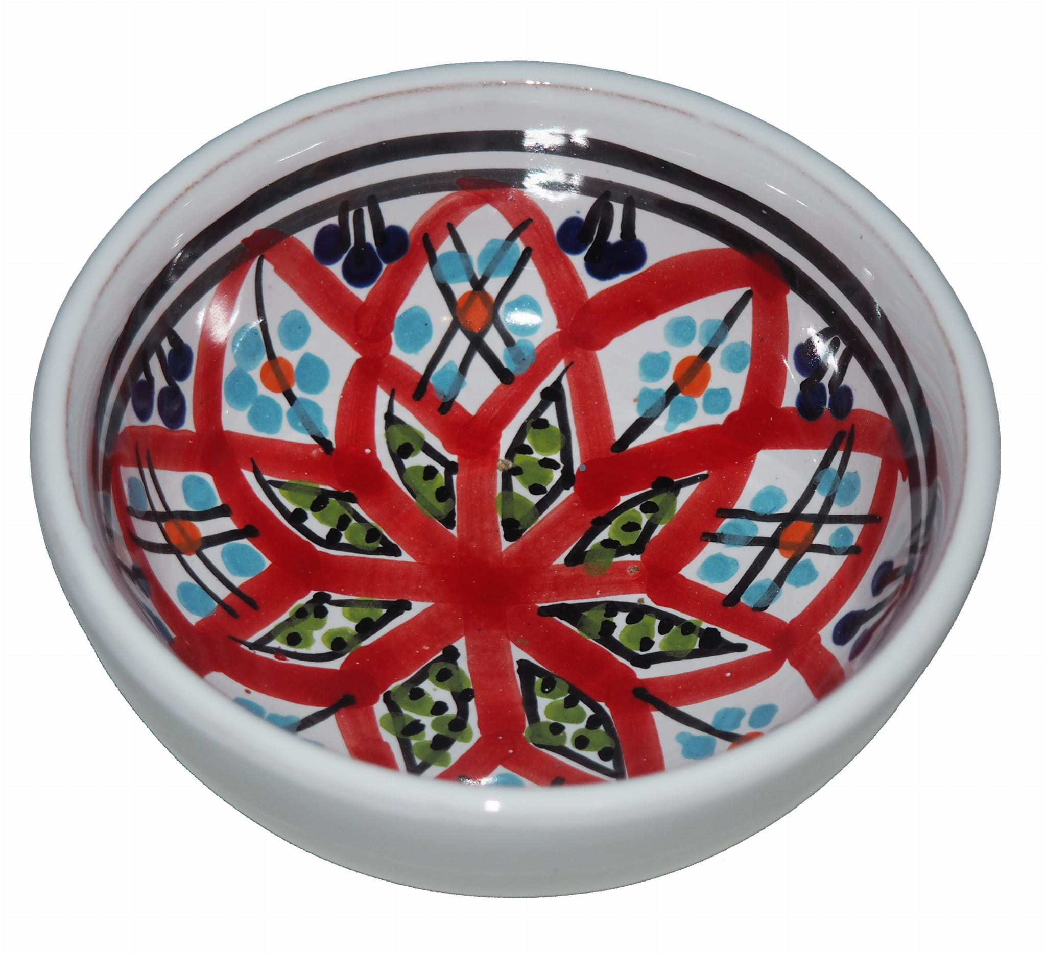 Zwraca uwagę piękne wzornictwo i bogata arabska kolorystyka. Miseczka malowana jest w berberyjskie wzory. Przepiękna, niebanalna ozdoba Twojego stołu - śliczna miseczka prosto z Tunezji.