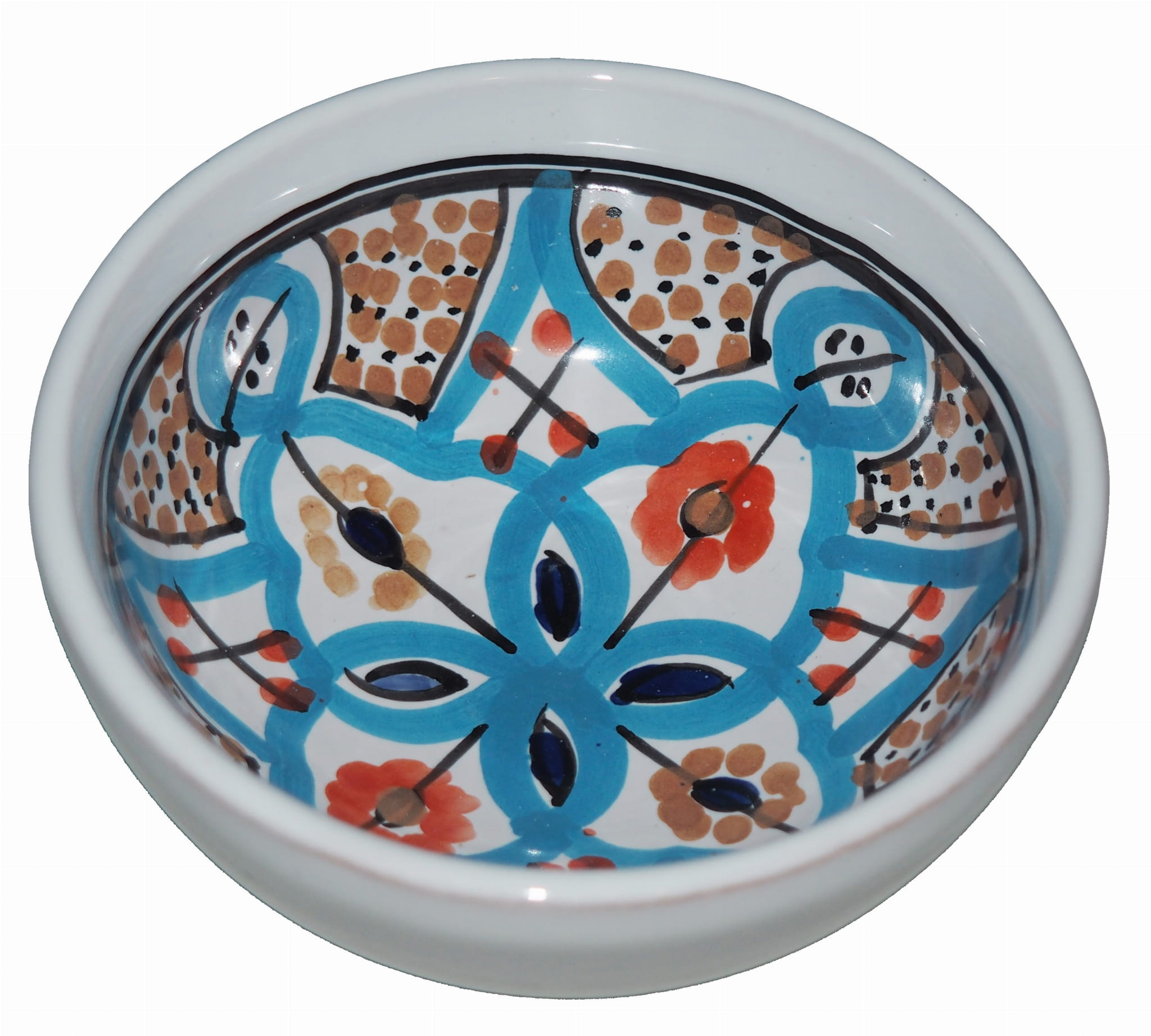 Zwraca uwagę piękne wzornictwo i bogata arabska kolorystyka. Miseczka malowana jest w berberyjskie wzory. Przepiękna, niebanalna ozdoba Twojego stołu - śliczna miseczka prosto z Tunezji.