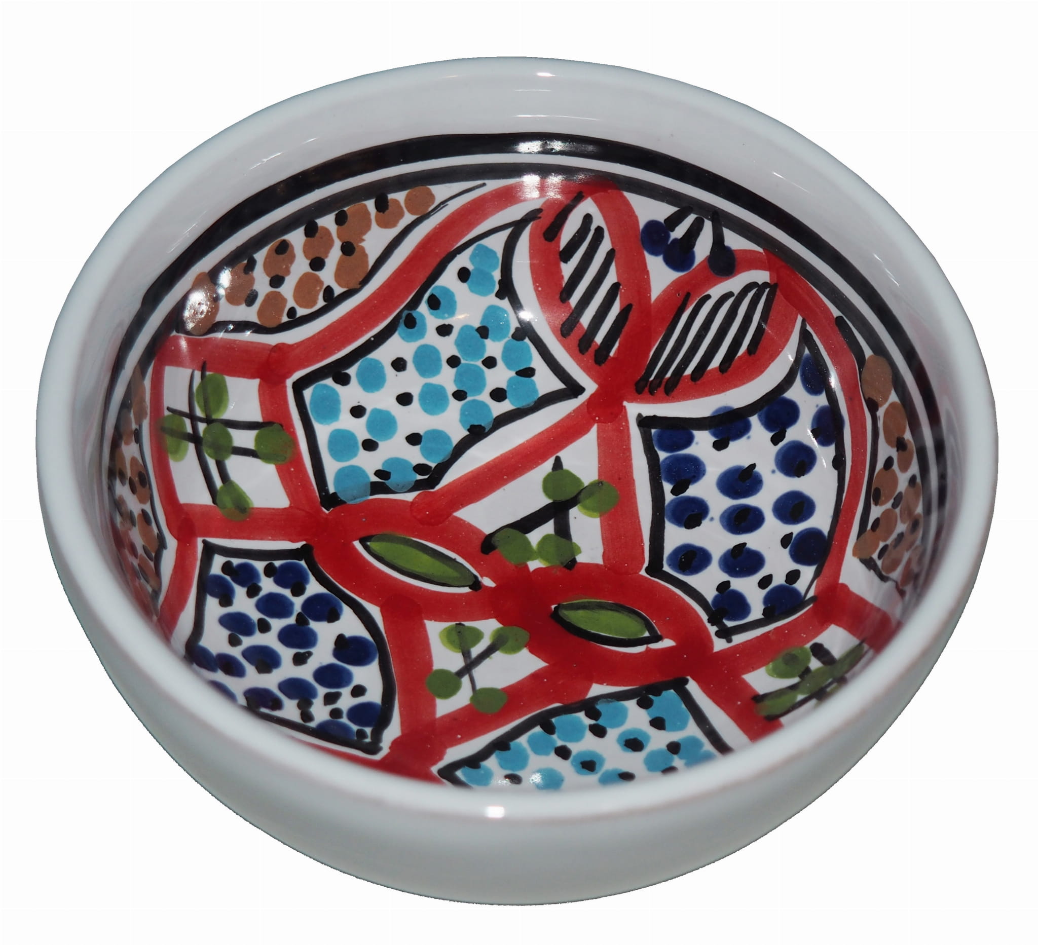 Zwraca uwagę piękne wzornictwo i bogata arabska kolorystyka. Miseczka malowana jest w berberyjskie wzory. Przepiękna, niebanalna ozdoba Twojego stołu - śliczna miseczka prosto z Tunezji.