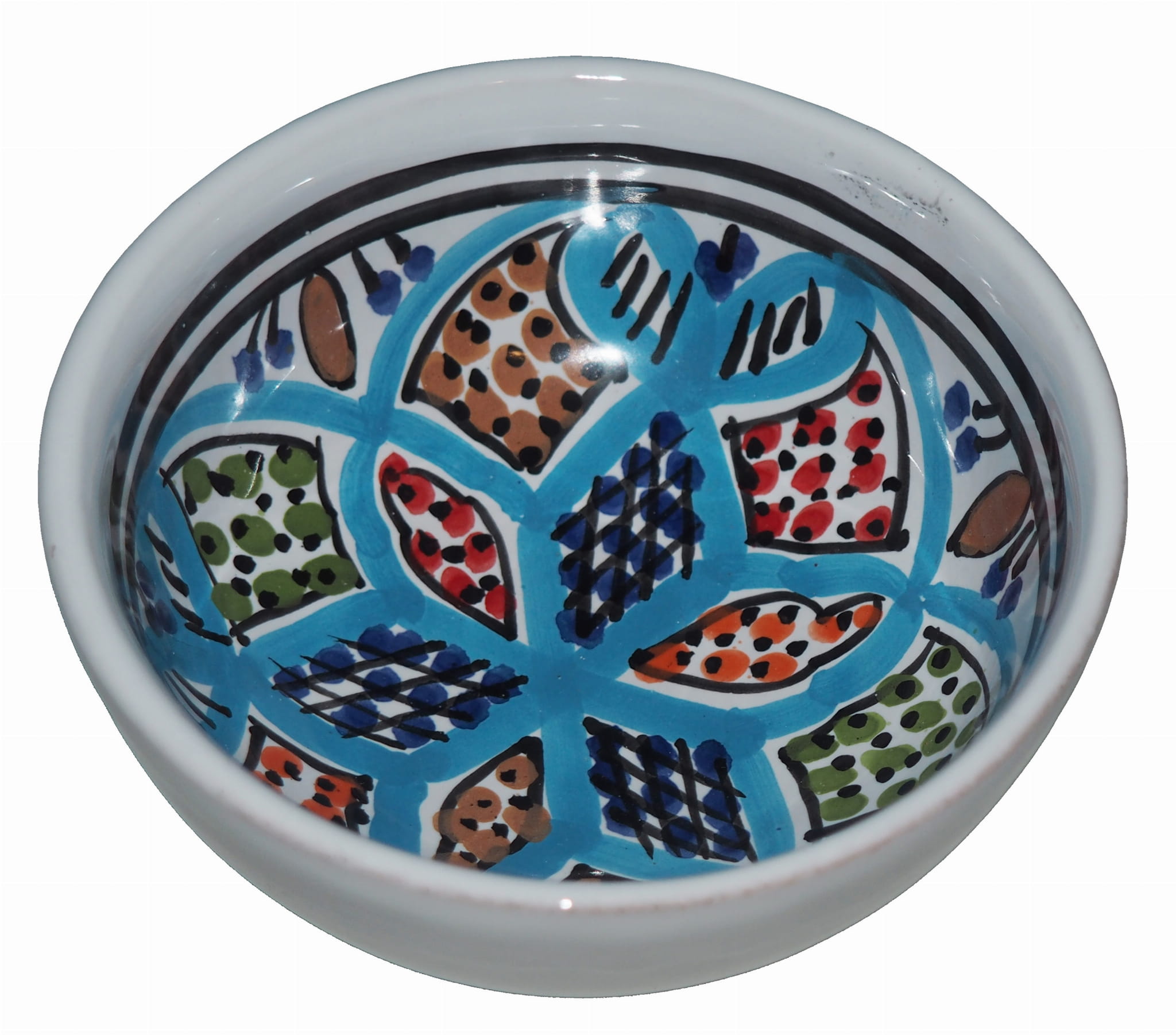Zwraca uwagę piękne wzornictwo i bogata arabska kolorystyka. Miseczka malowana jest w berberyjskie wzory. Przepiękna, niebanalna ozdoba Twojego stołu - śliczna miseczka prosto z Tunezji.