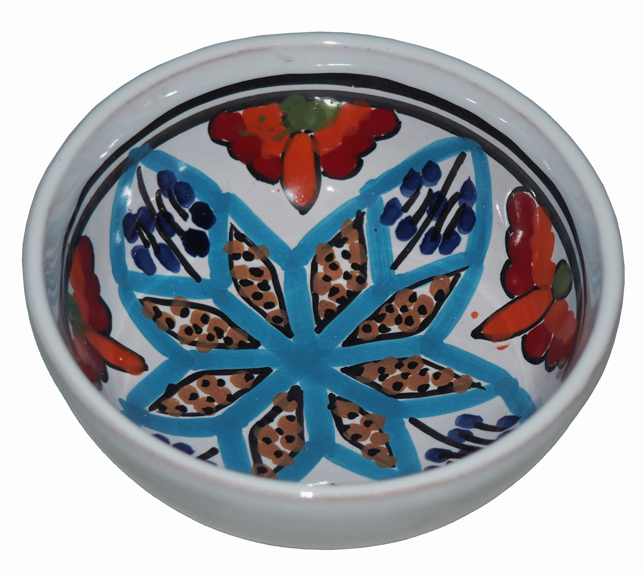 Zwraca uwagę piękne wzornictwo i bogata arabska kolorystyka. Miseczka malowana jest w berberyjskie wzory. Przepiękna, niebanalna ozdoba Twojego stołu - śliczna miseczka prosto z Tunezji.
