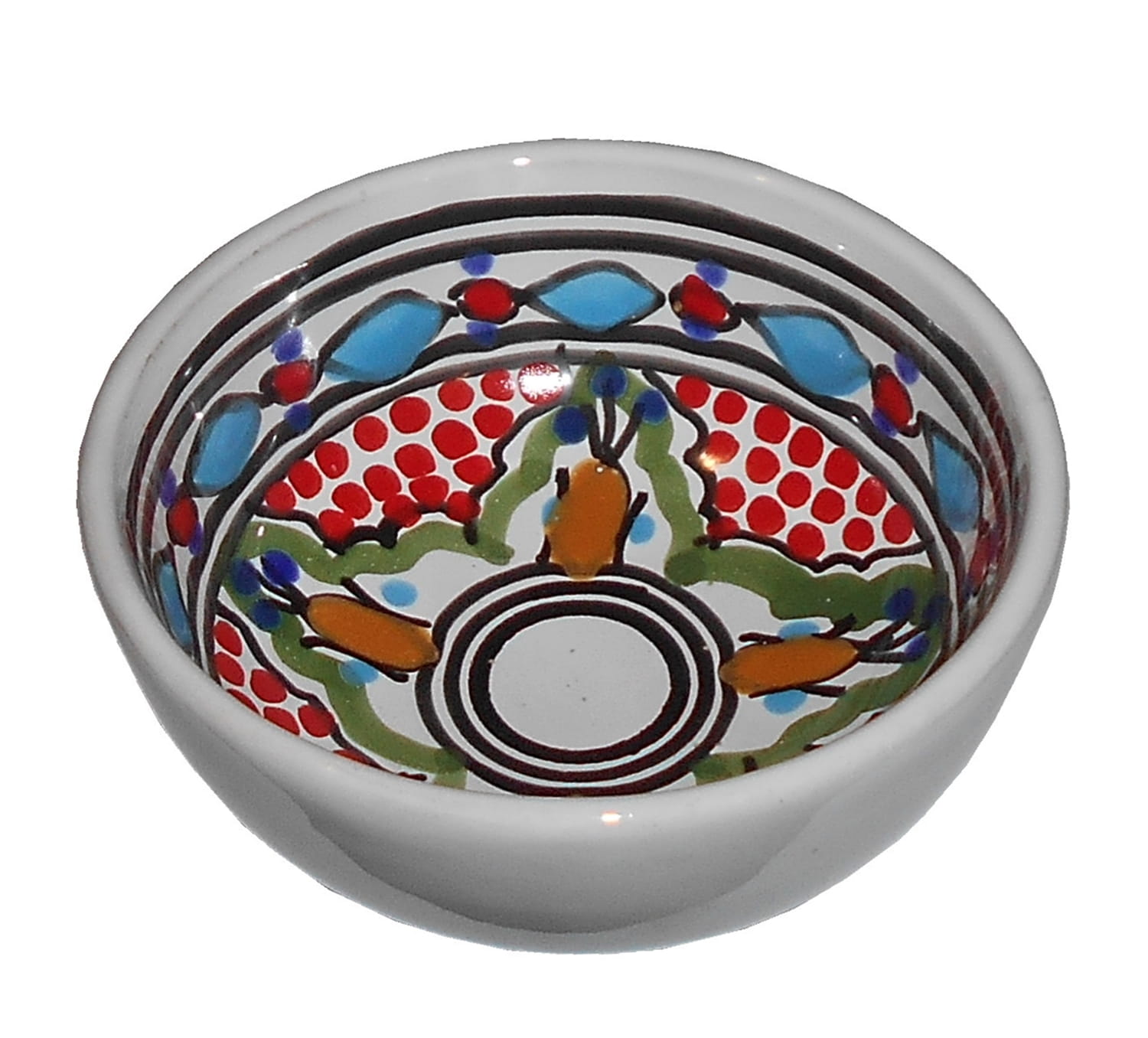 Zwraca uwagę piękne wzornictwo i bogata arabska kolorystyka. Miseczka malowana jest w berberyjskie wzory. Przepiękna, niebanalna ozdoba Twojego stołu - śliczna miseczka prosto z Tunezji.