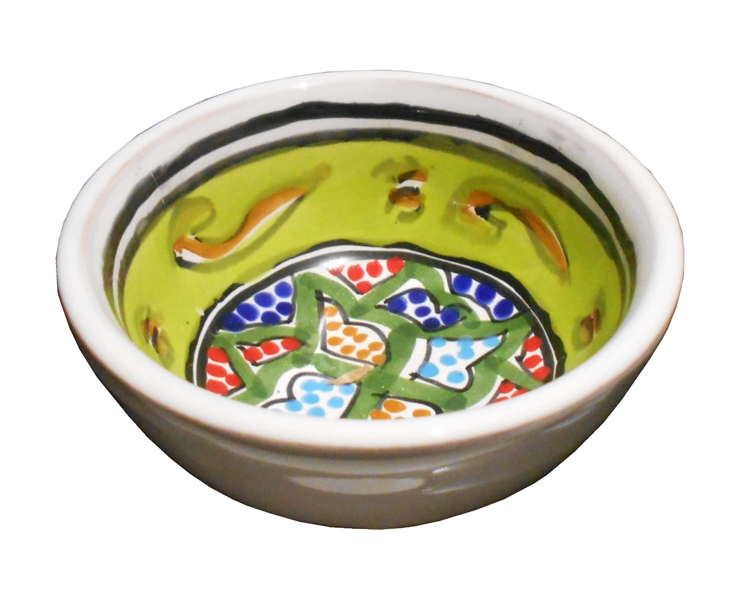 Zwraca uwagę piękne wzornictwo i bogata arabska kolorystyka. Miseczka malowana jest w berberyjskie wzory. Przepiękna, niebanalna ozdoba Twojego stołu - śliczna miseczka prosto z Tunezji.