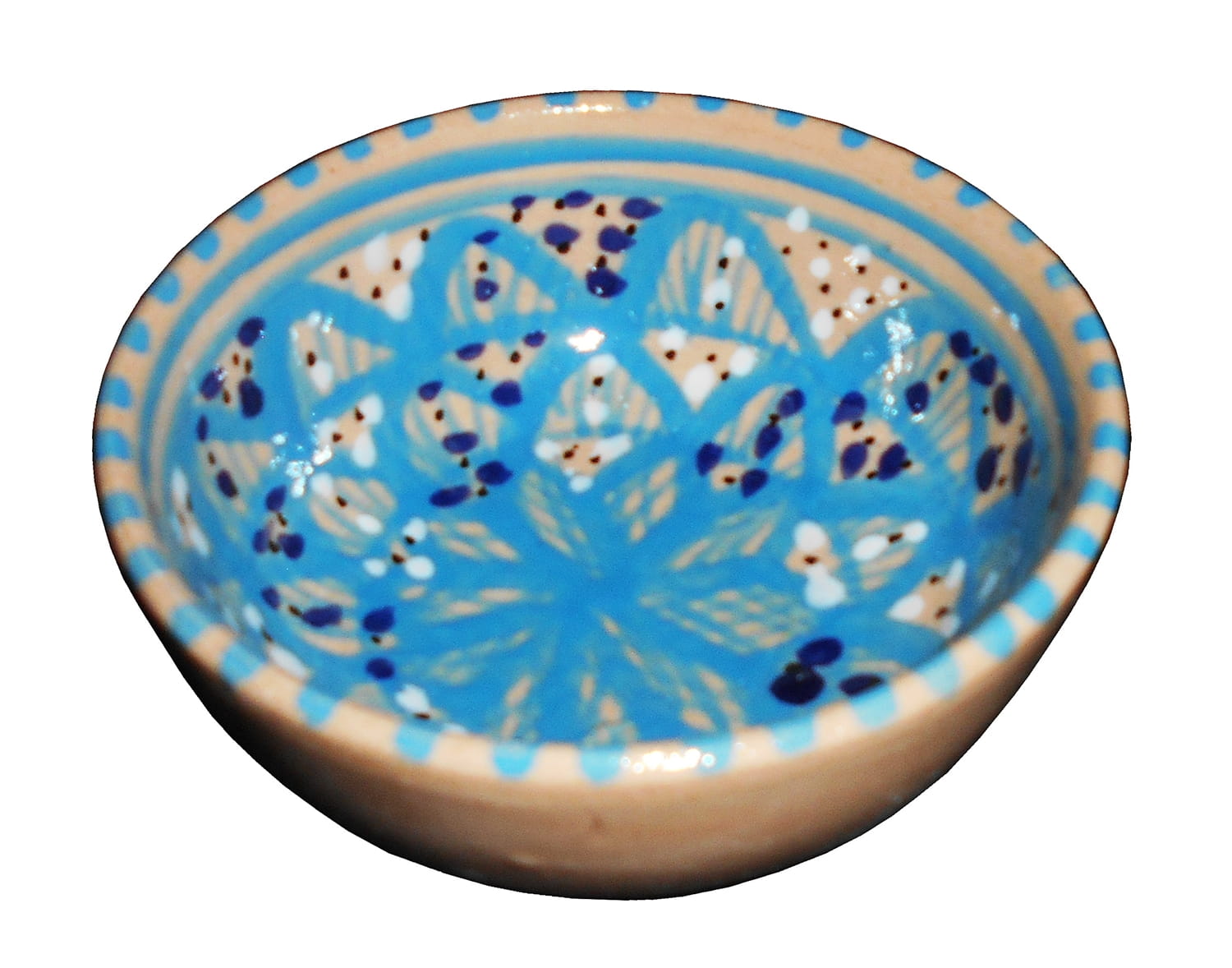 Zwraca uwagę piękne wzornictwo i bogata arabska kolorystyka. Miseczka malowana jest w berberyjskie wzory. Przepiękna, niebanalna ozdoba Twojego stołu - ozdobny,a jednocześnie funkcjonalny gadżet pochodzący z Tunezji.