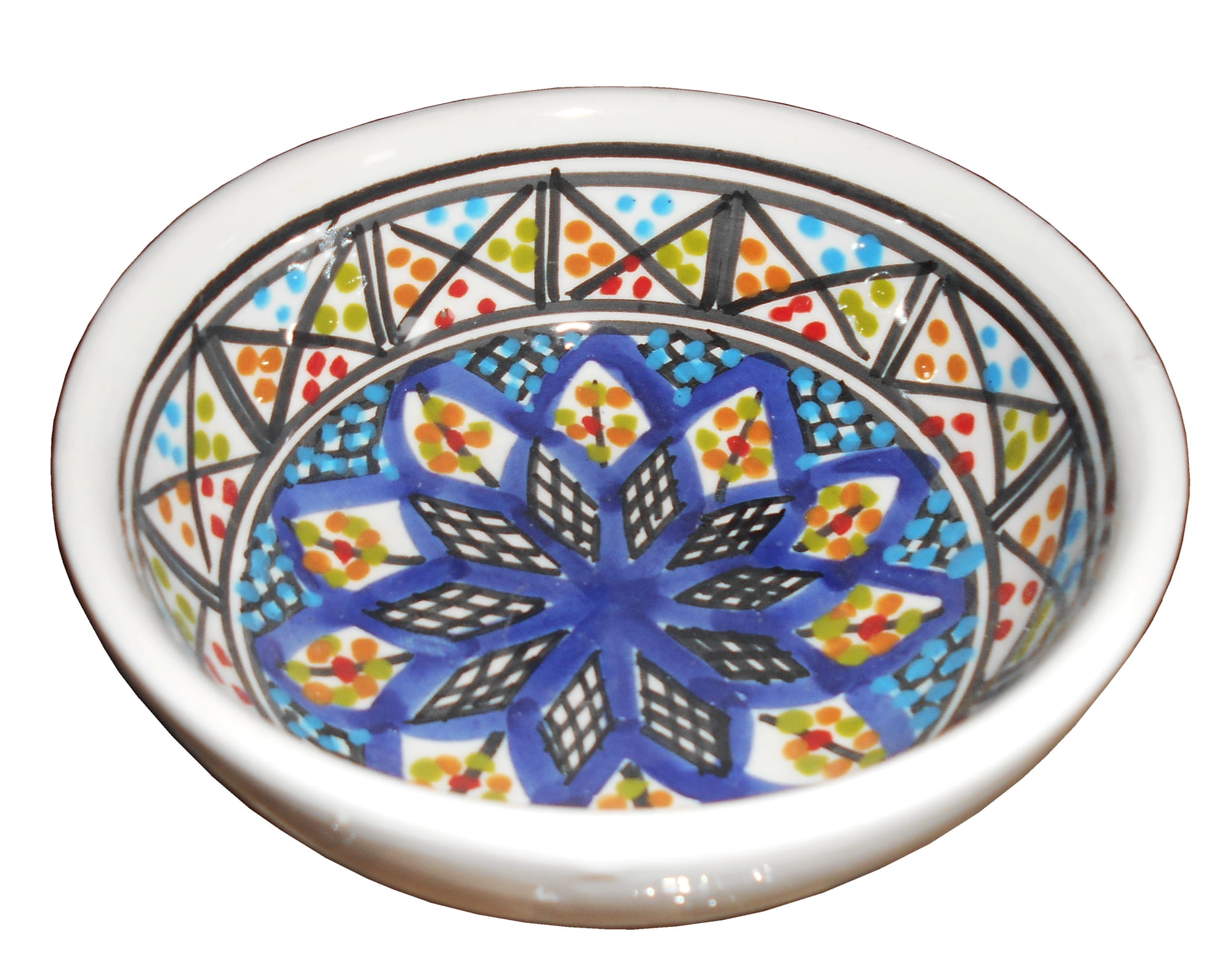 Zwraca uwagę piękne wzornictwo i bogata arabska kolorystyka. Miseczka malowana jest w berberyjskie wzory.