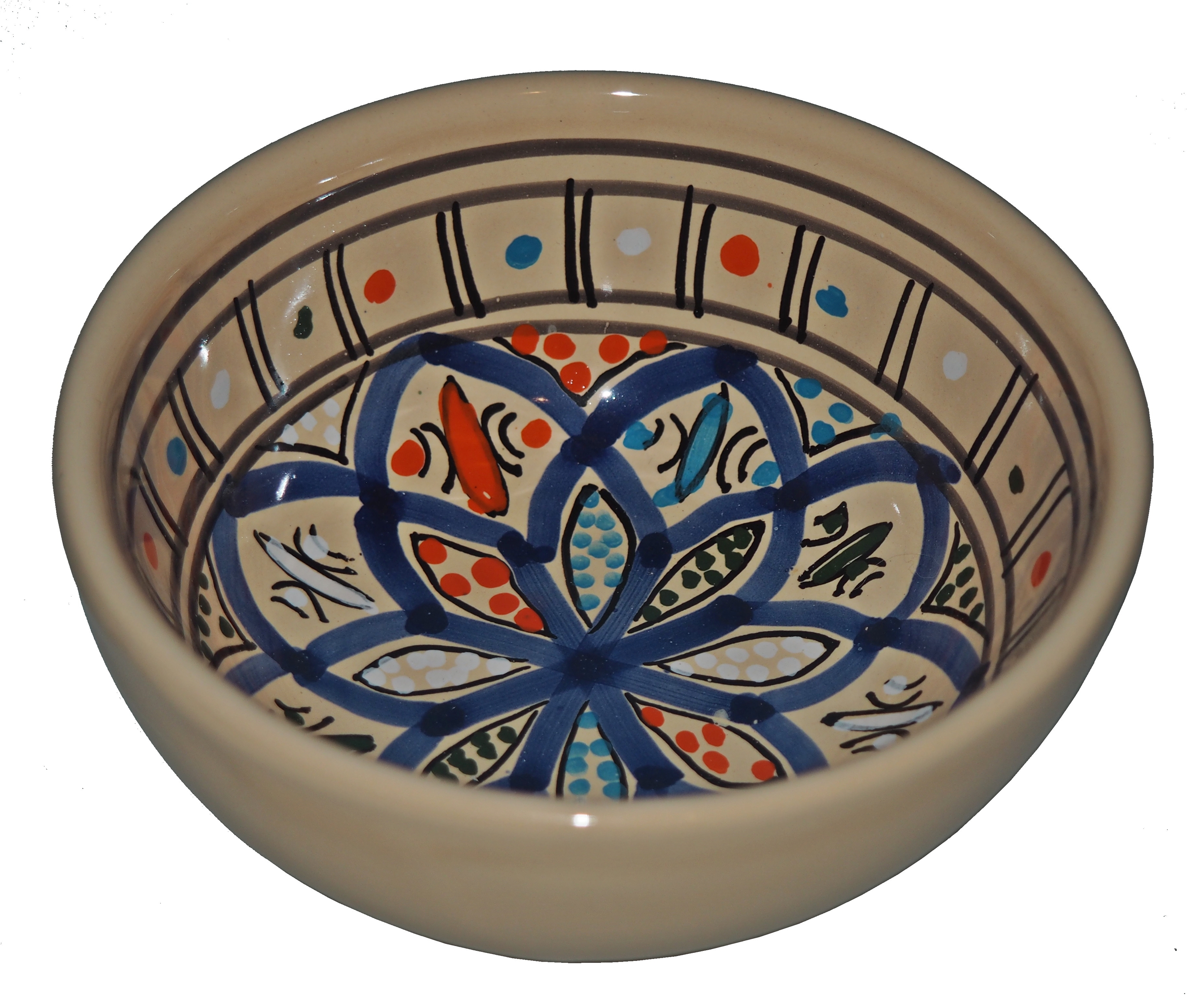 Zwraca uwagę piękne wzornictwo i bogata arabska kolorystyka. Miseczka malowana jest w berberyjskie wzory. Przepiękna, niebanalna ozdoba Twojego stołu prosto z Tunezji.