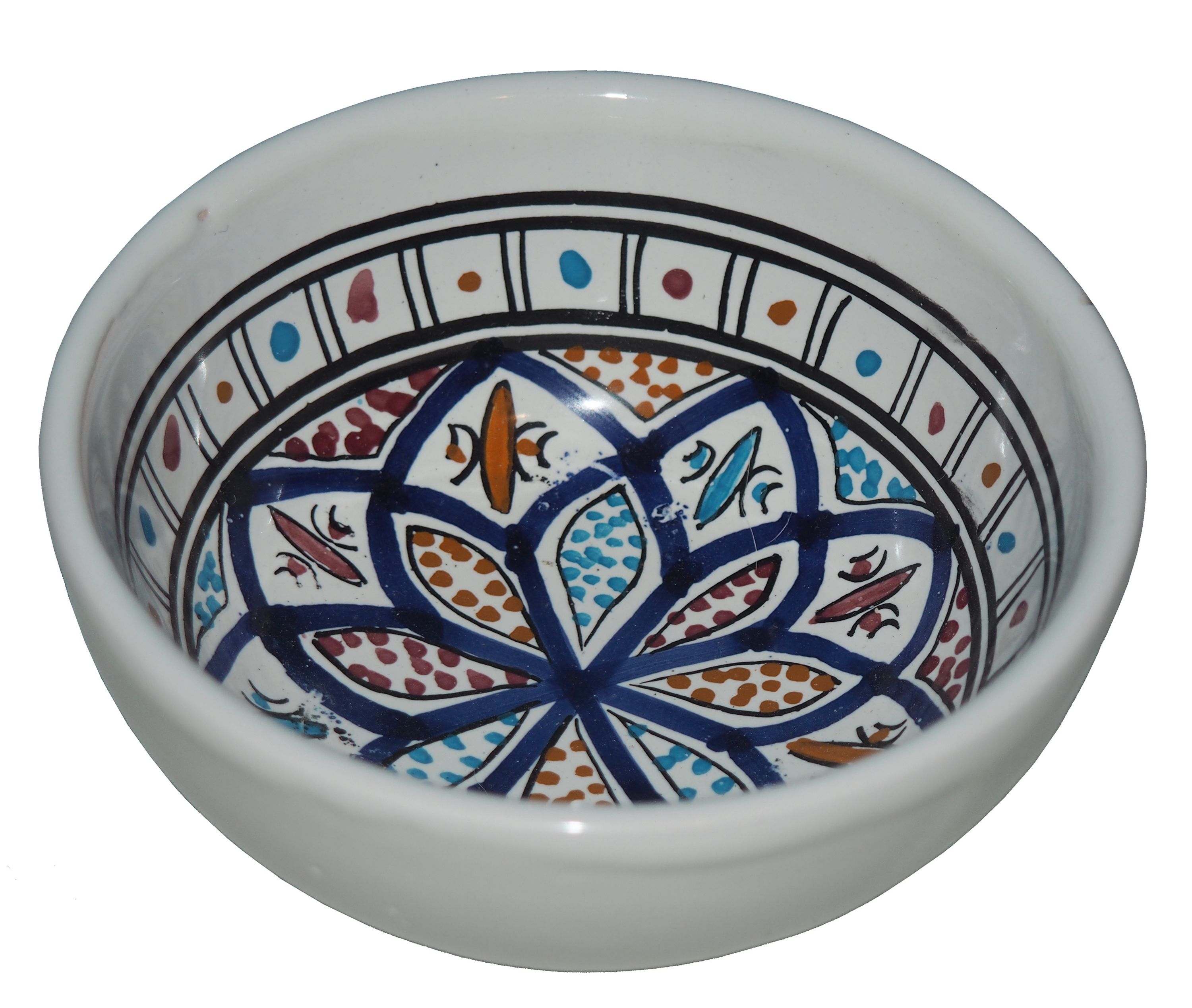 Zwraca uwagę piękne wzornictwo i bogata arabska kolorystyka. Miseczka malowana jest w berberyjskie wzory. Przepiękna, niebanalna ozdoba Twojego stołu prosto z Tunezji.